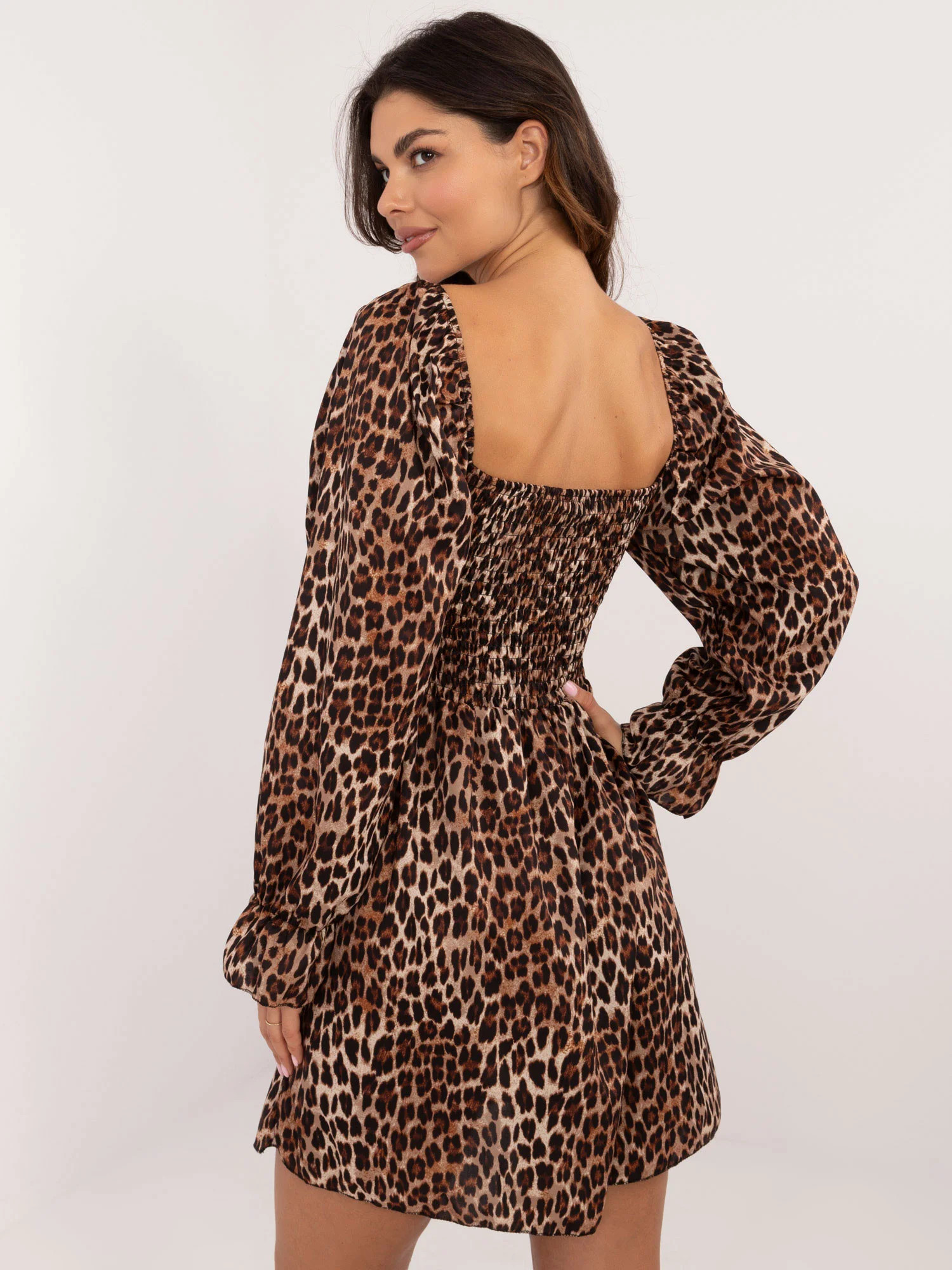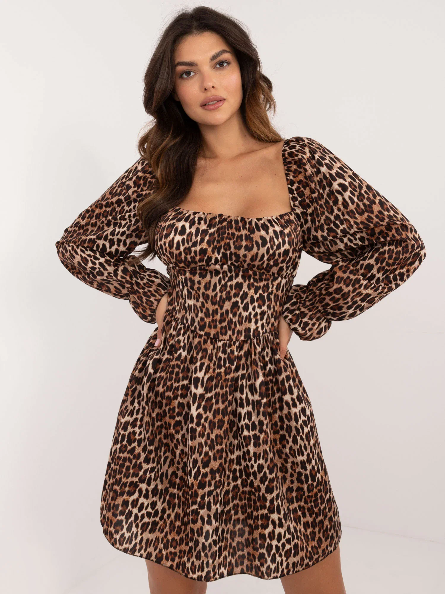 Rozměry šatů v jedné velikosti měřené na plocho: šířka v podpaží - 35 cm, délka rukávu - 65 cm, celková délka - 85 cm.
