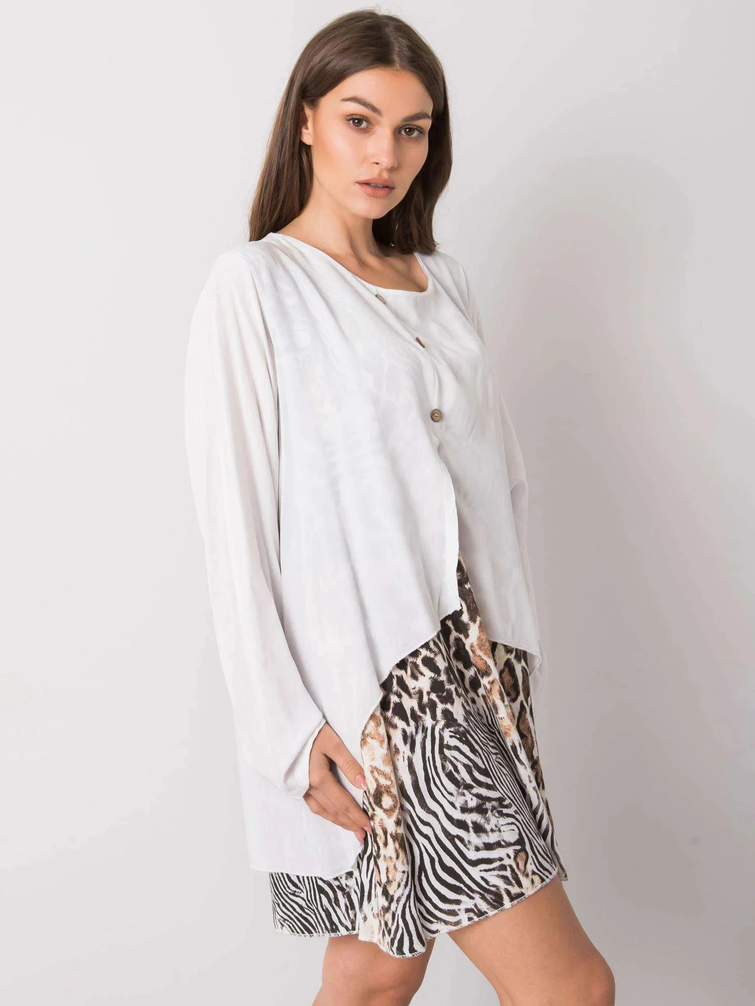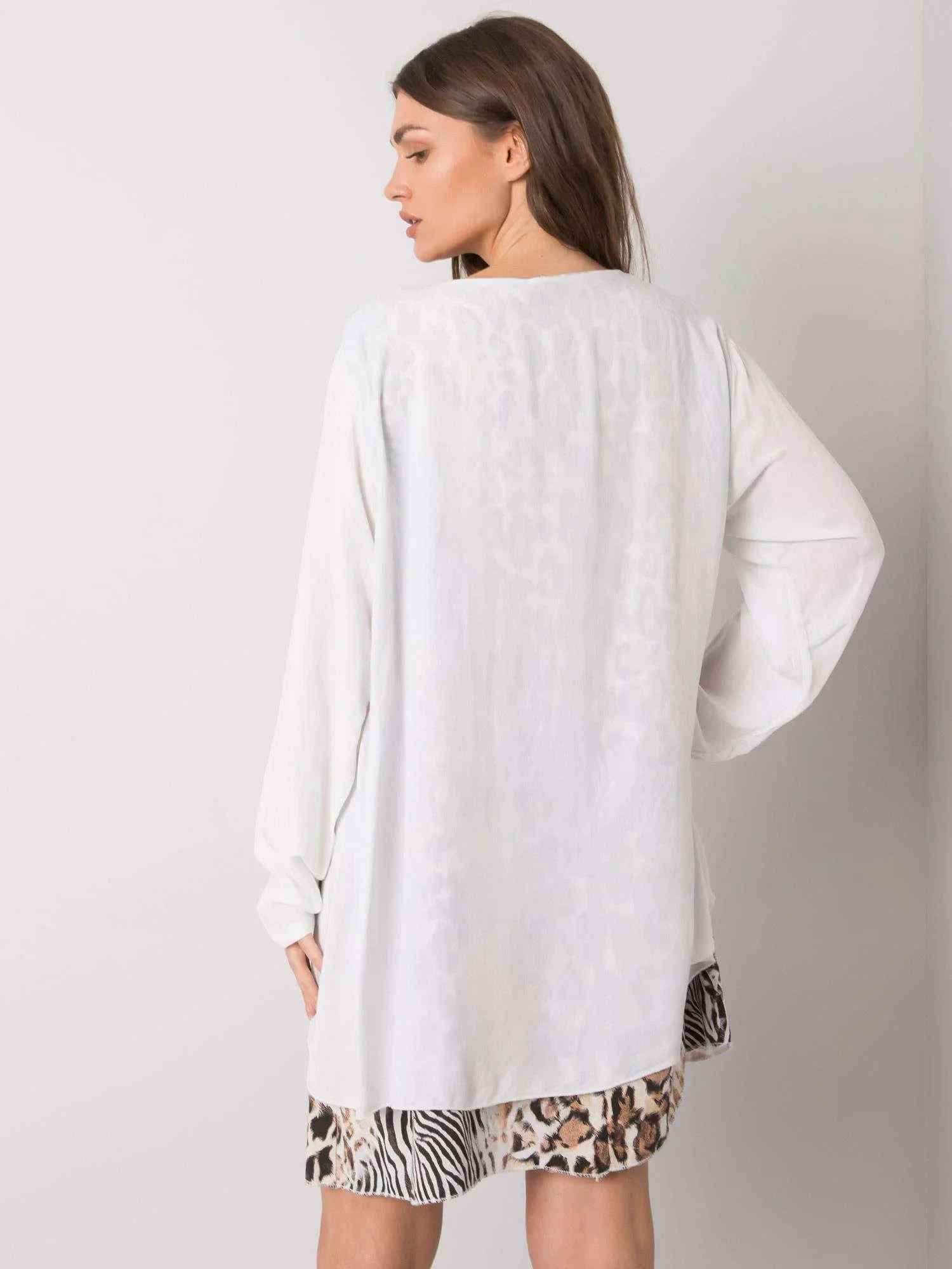 Bílé dámské oversize šaty.