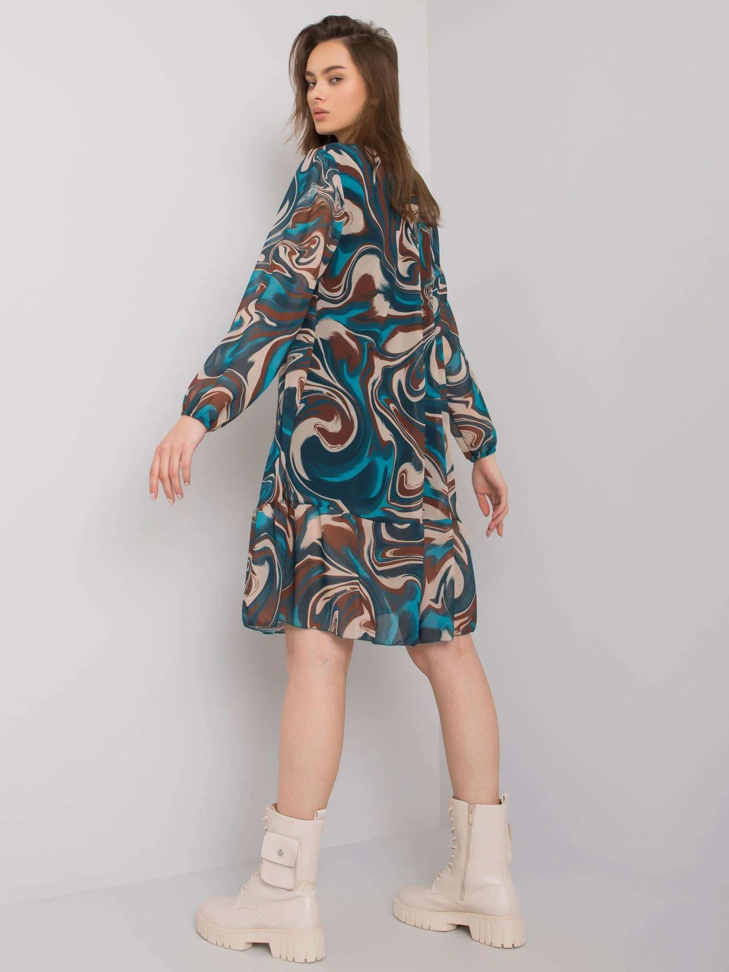 Modelka má na sobě jednu velikost. Rozměry modelky: výška 176 cm, poprsí 85 cm, pas 61 cm, boky 91 cm.