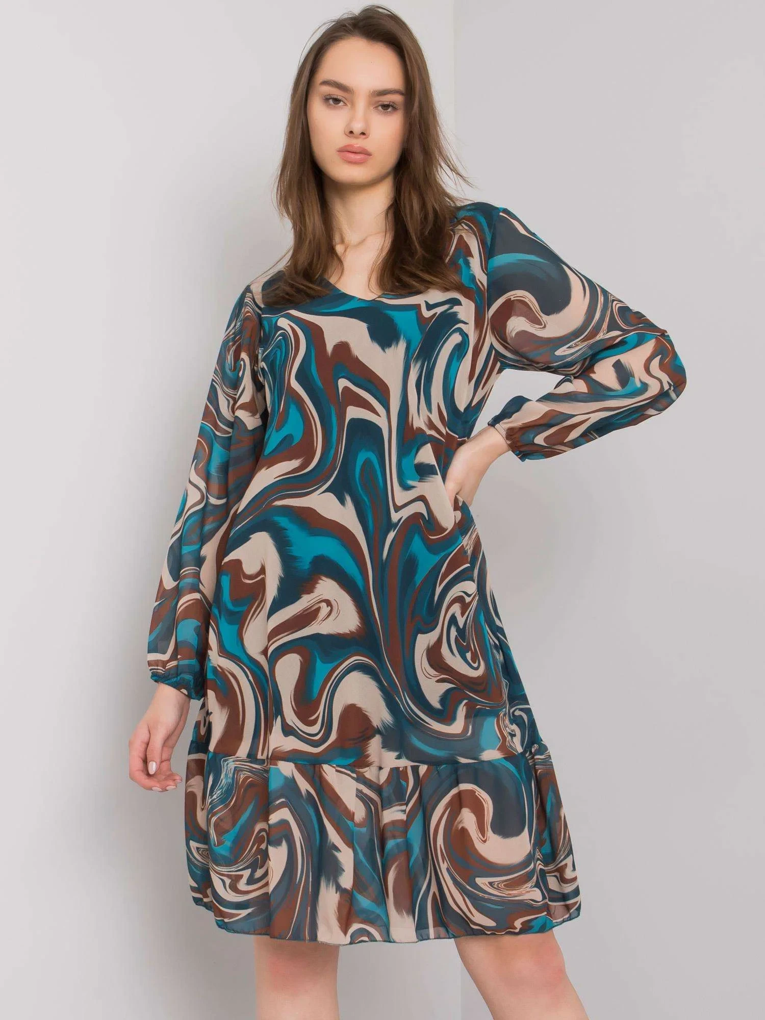 Rozměry šatů v jedné velikosti měřené na plocho: šířka v podpaží - 49 cm, celková délka - 93 cm, délka rukávu - 57 cm EAN čárové kódy zboží jsou: