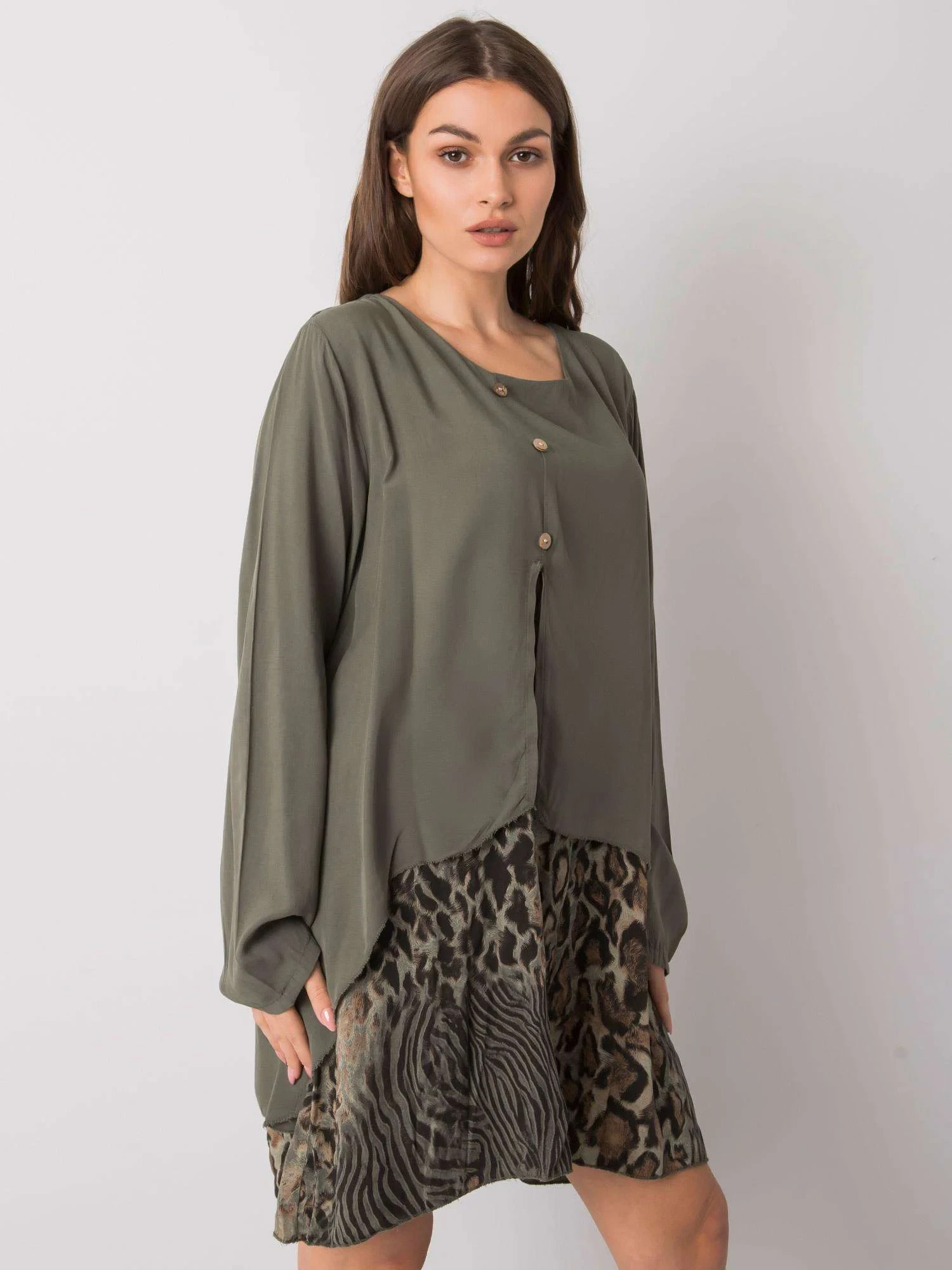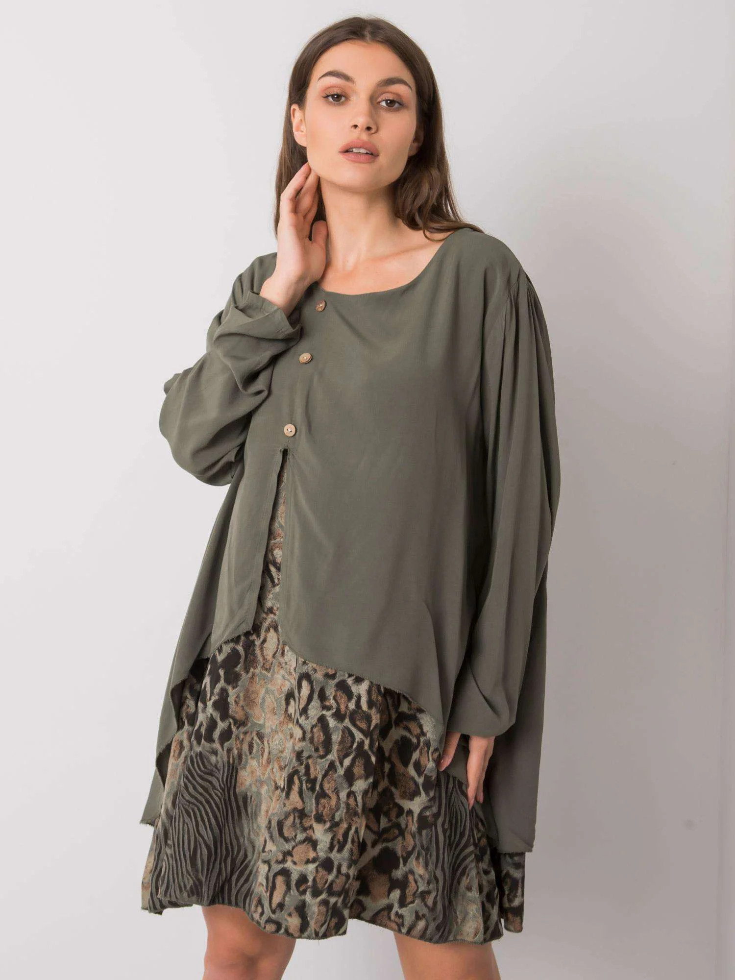 Dámské oversize šaty v khaki barvě.