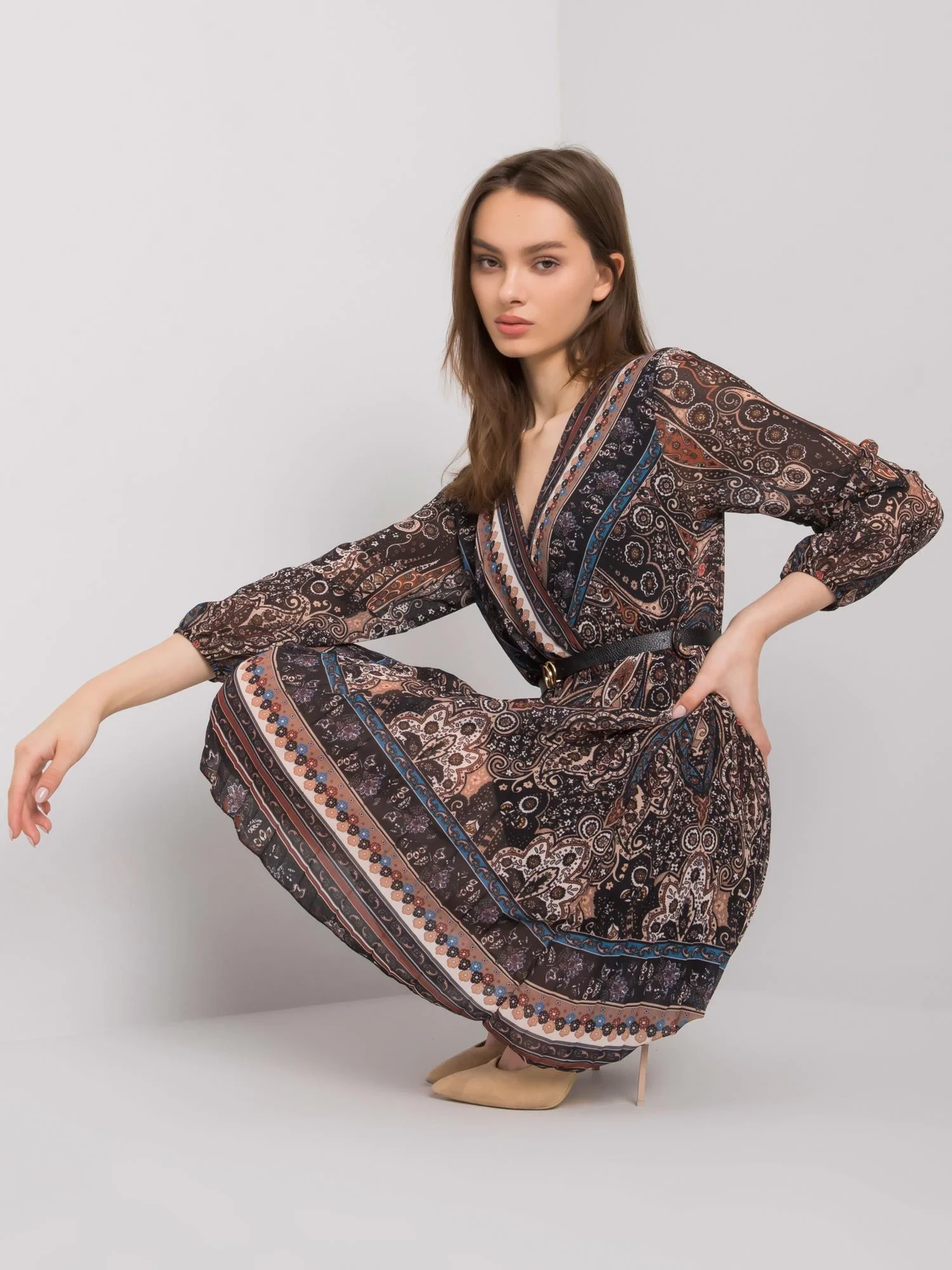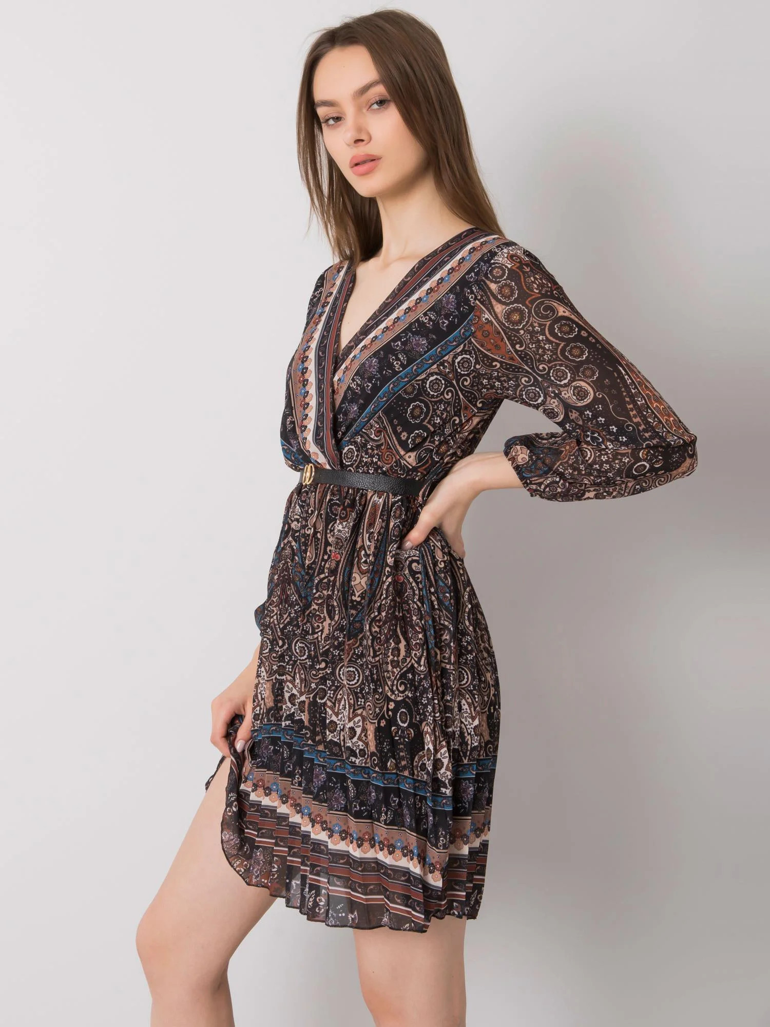 Modelka má na sobě jednu velikost. Rozměry modelky: výška 176 cm, poprsí 85 cm, pas 61 cm, boky 91 cm.