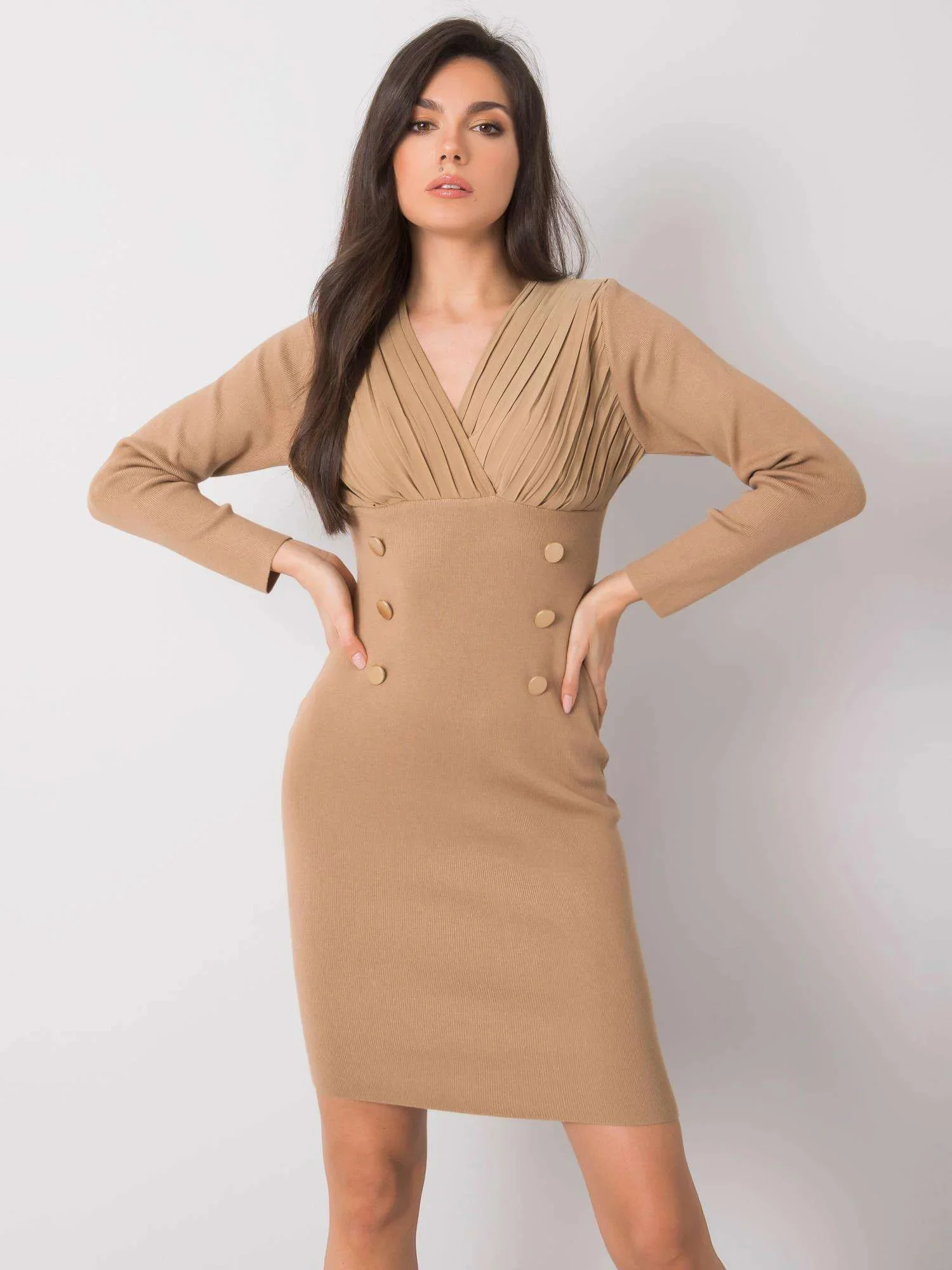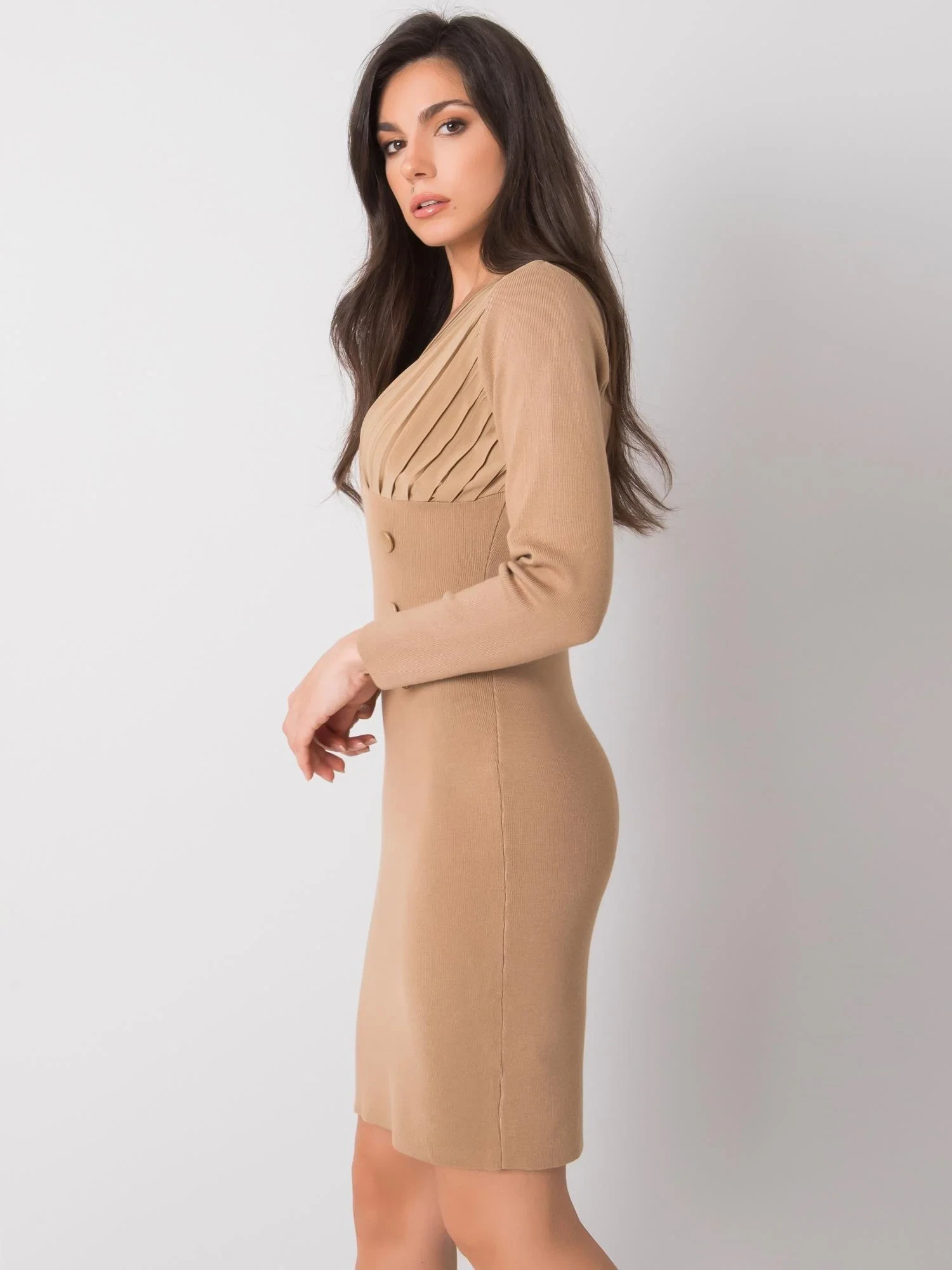 Tmavě béžové přiléhavé šaty .