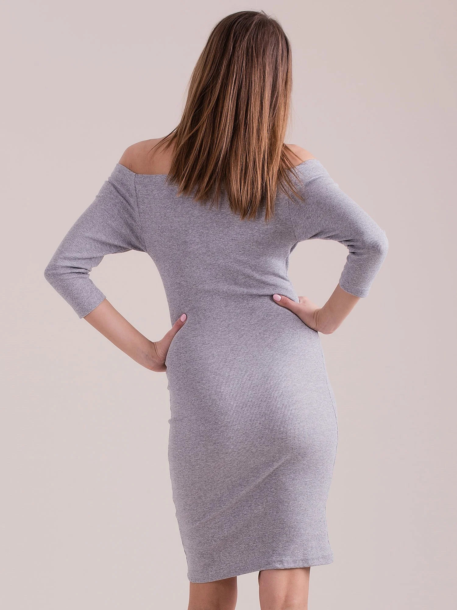Světle šedé šaty s měkkým výstřihem