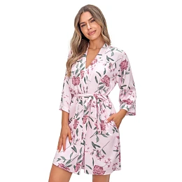 Gabriela je elegantní a mimořádně ženský župan pro ženy, které milují pohodlí a styl. Je vyroben z vysoce kvalitní viskózy s elastanem, je měkký, prodyšný a dokonale se přizpůsobí tělu. Zavazování v pase decentním způsobem zvýrazňuje pas a zaručuje pohodlí při používání. Jemný květinový vzor dodává županu romantický charakter, zatímco praktické kapsy zvyšují jeho funkčnost. Díky lehkému střihu je ideální jako součást ranního outfitu i pro večerní relaxaci. Je ideální volbou pro ženy, které ocení elegantní domácí prádlo a vysokou kvalitu zpracování.