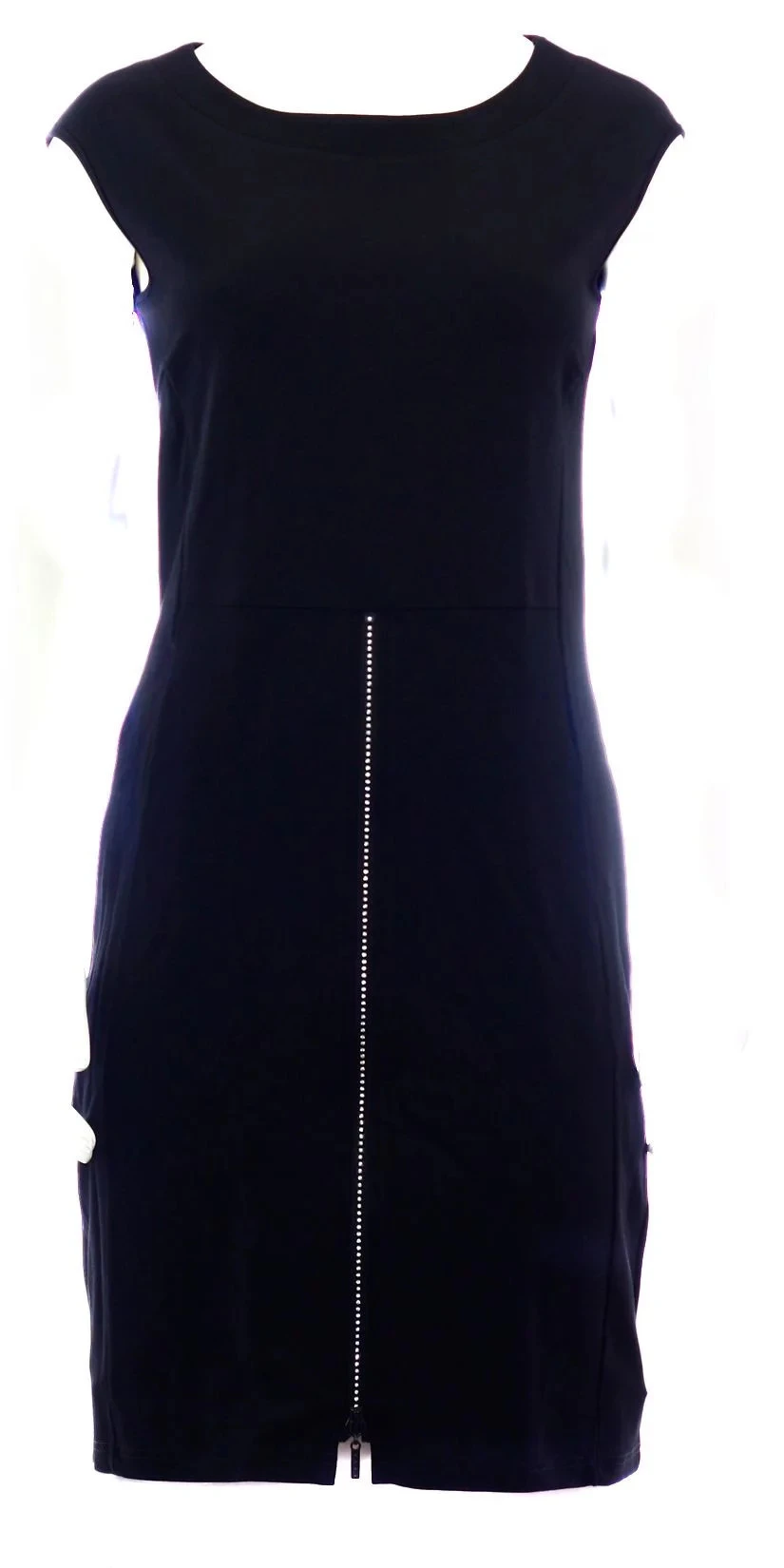 Elegantní šaty bez rukávů, střih zvýrazňuje ženské křivky. Efektně ozdobeno křišťálky zn.SWAROVSKI. Barva smetanová, černá. Materiál 63% viskóza, 31% polyamid, 6% elastan.