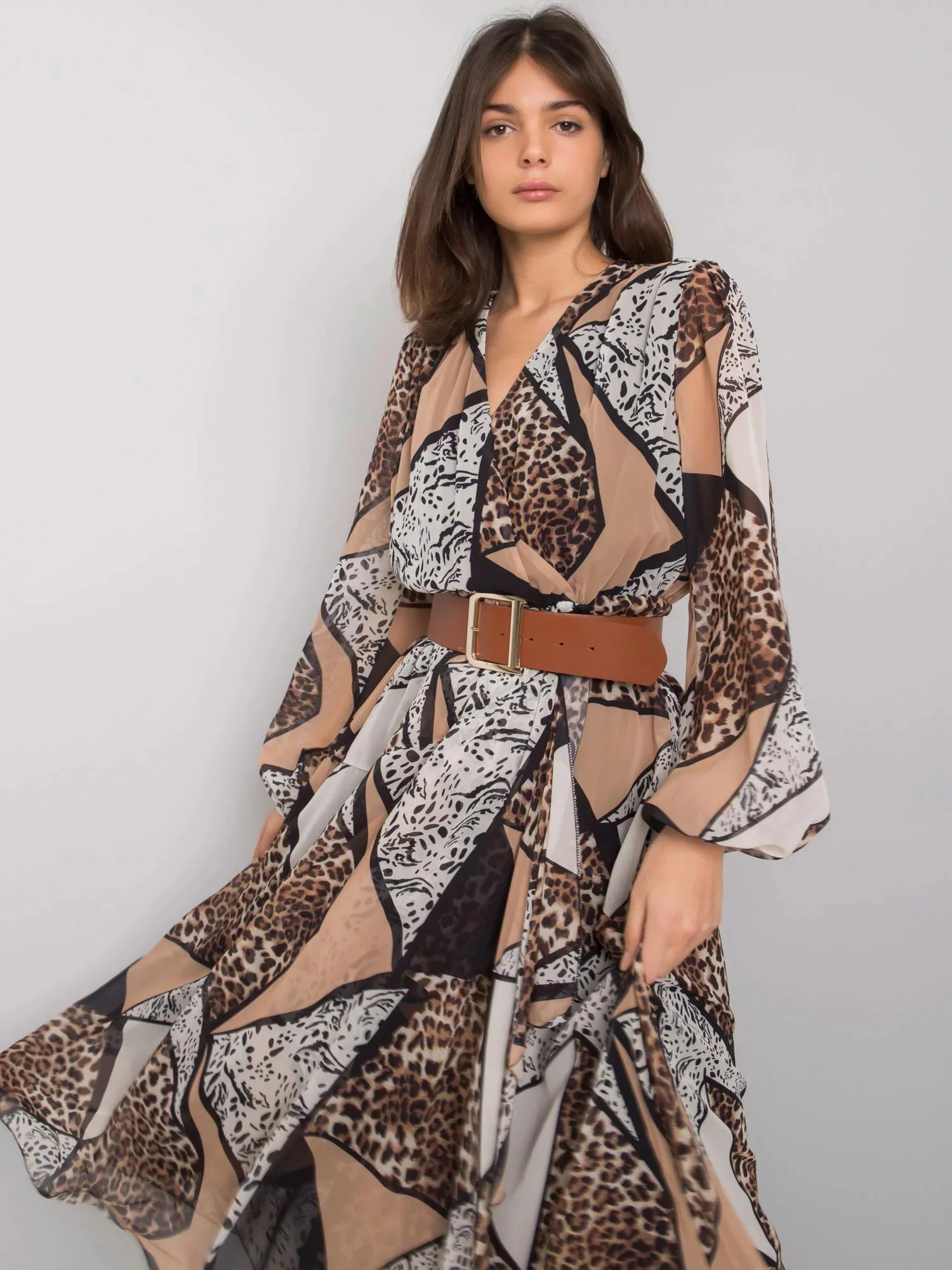Modelka má na sobě velikost S. Rozměry modelky: výška 175 cm, prsa 83 cm, pas 61 cm, boky 88 cm.