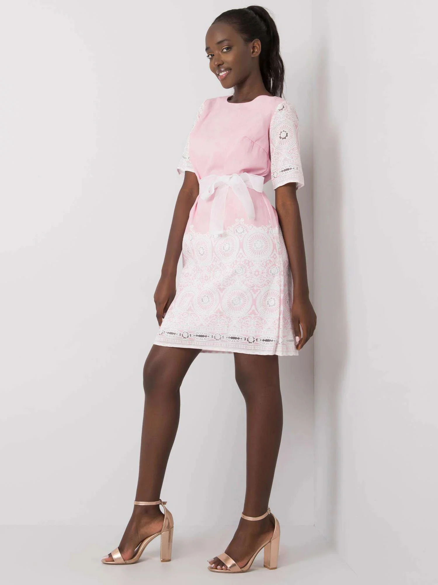 Šaty LK SK 506836 1.74P bílá a růžová