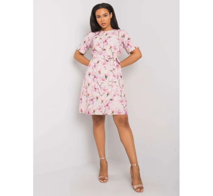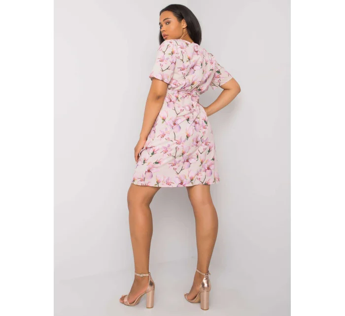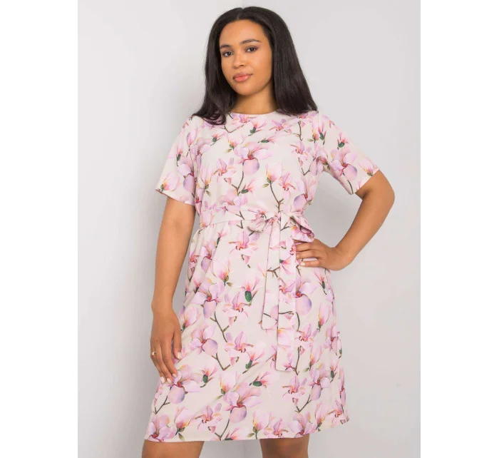 Béžové plus size květinové šaty se zavazováním .