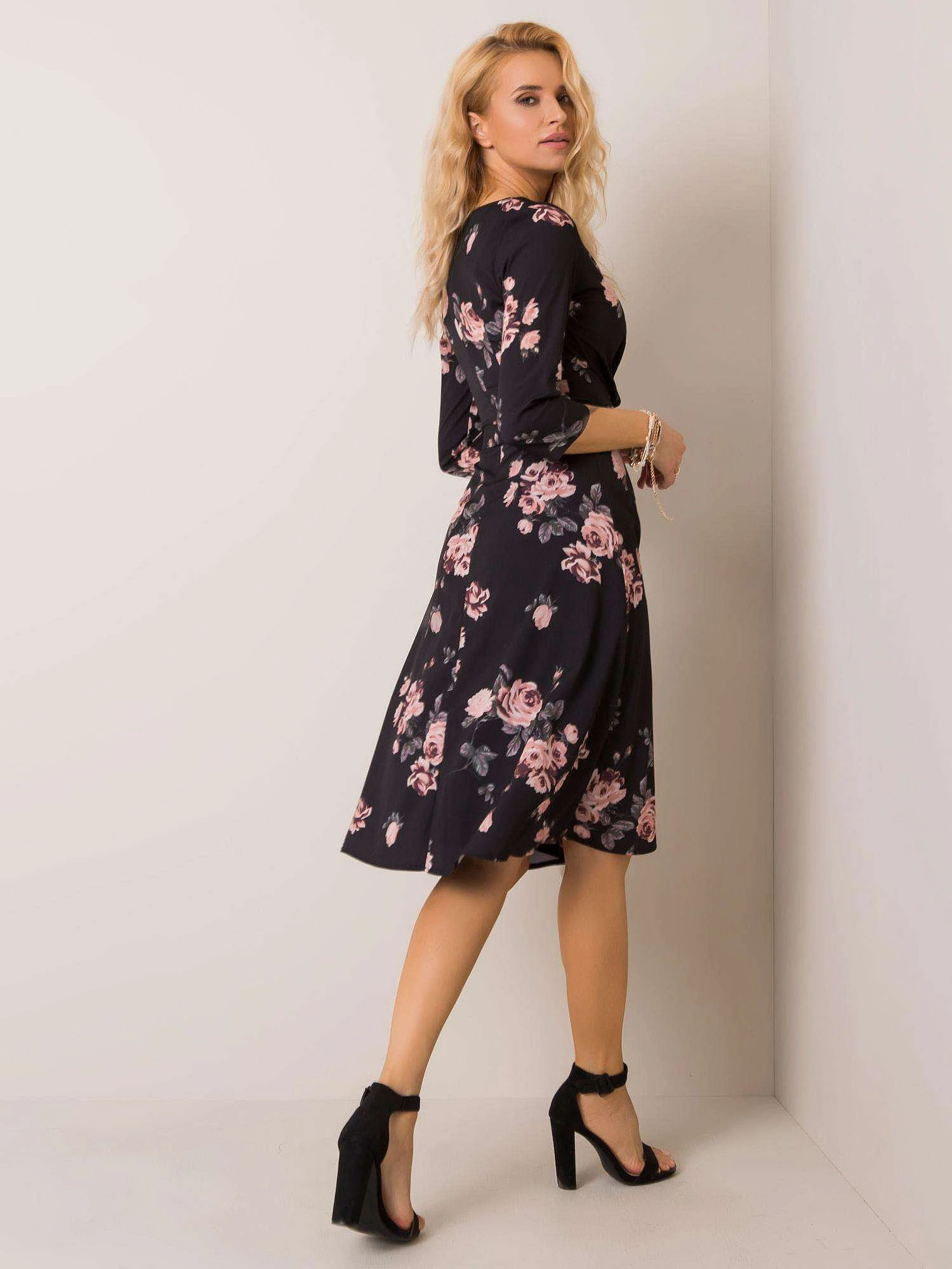 Černé květinové midi šaty.