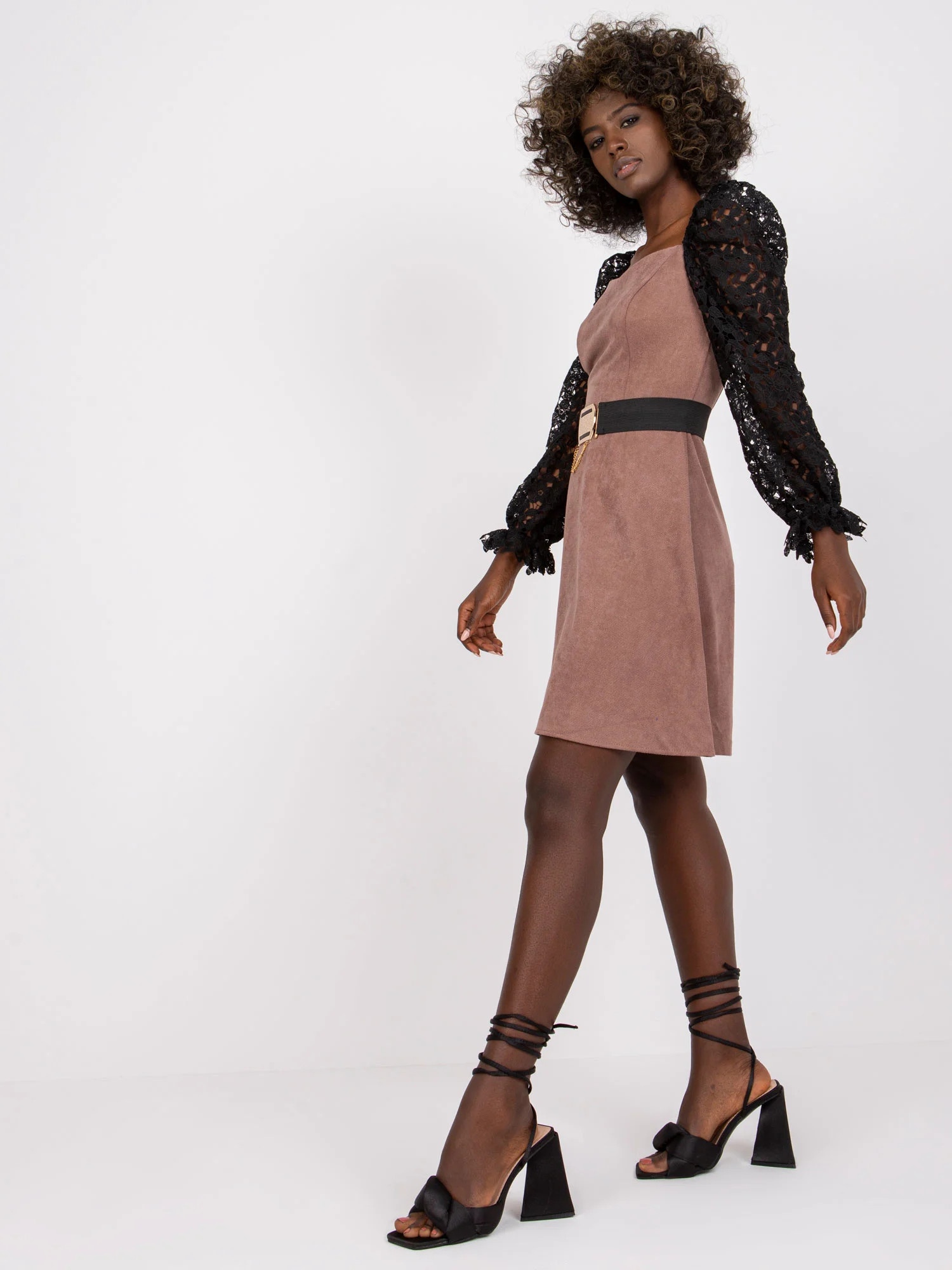 Modelka má na sobě velikost 36. Rozměry modelky: výška 168 cm, prsa 82 cm, pas 62 cm, boky 93 cm.