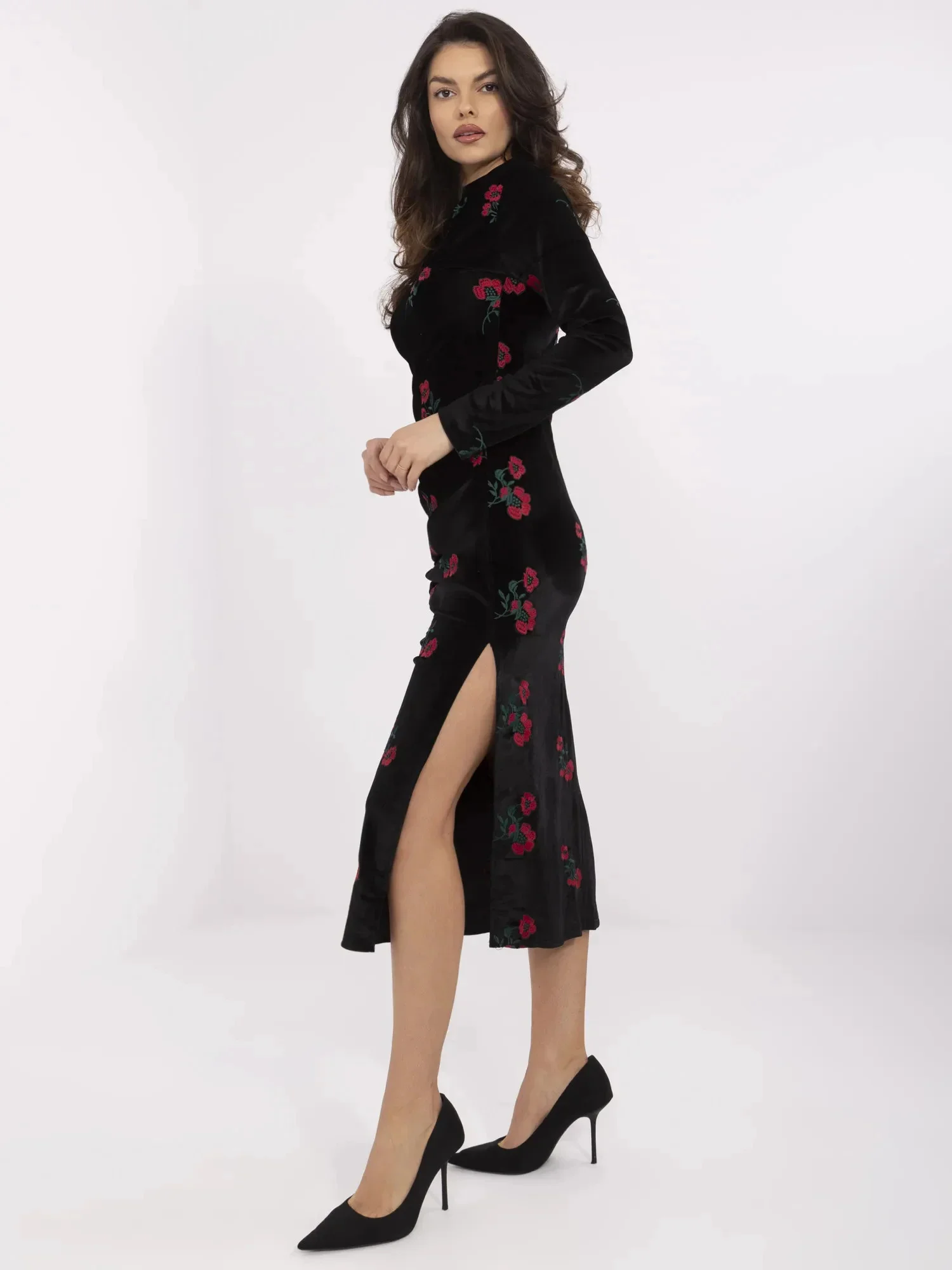 modelka má na sobě velikost M. Rozměry modelky: výška 173 cm, prsa 85 cm, pas 62 cm, boky 95 cm.
