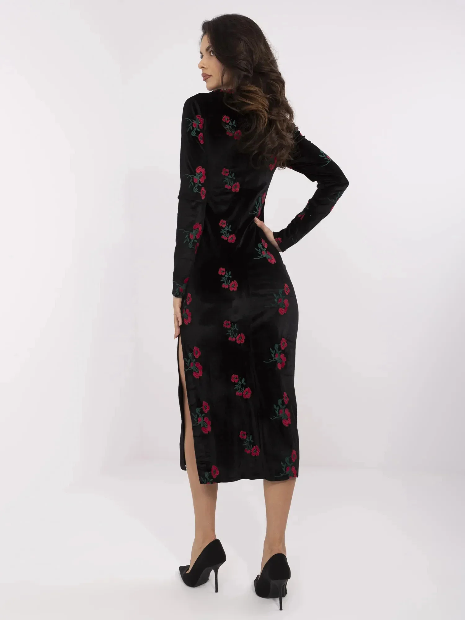 Rozměry šatů velikosti M: šířka v podpaží - 46 cm, délka rukávu - 62 cm, celková délka - 132 cm .
