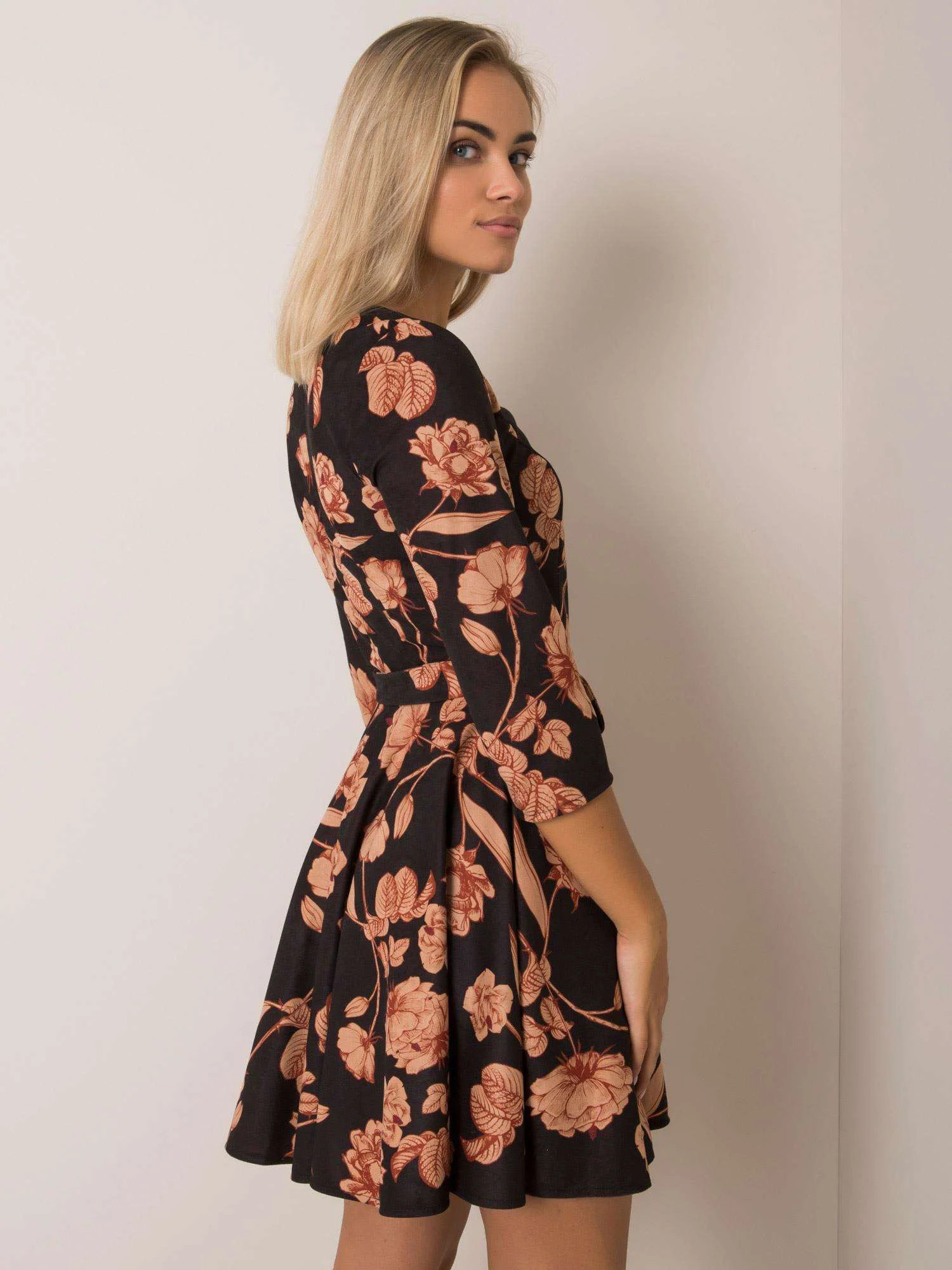 Černé šaty s květinovým páskem.