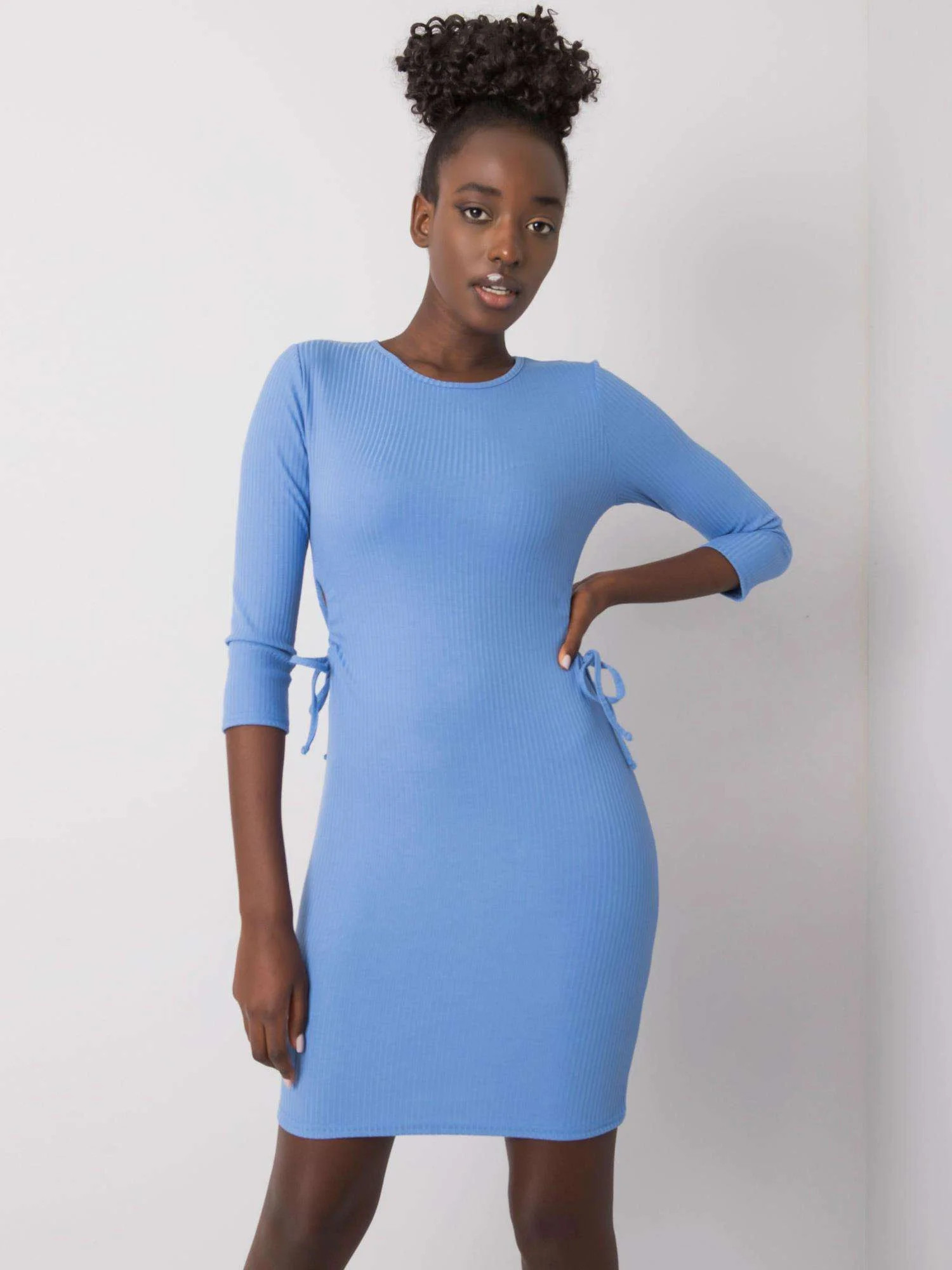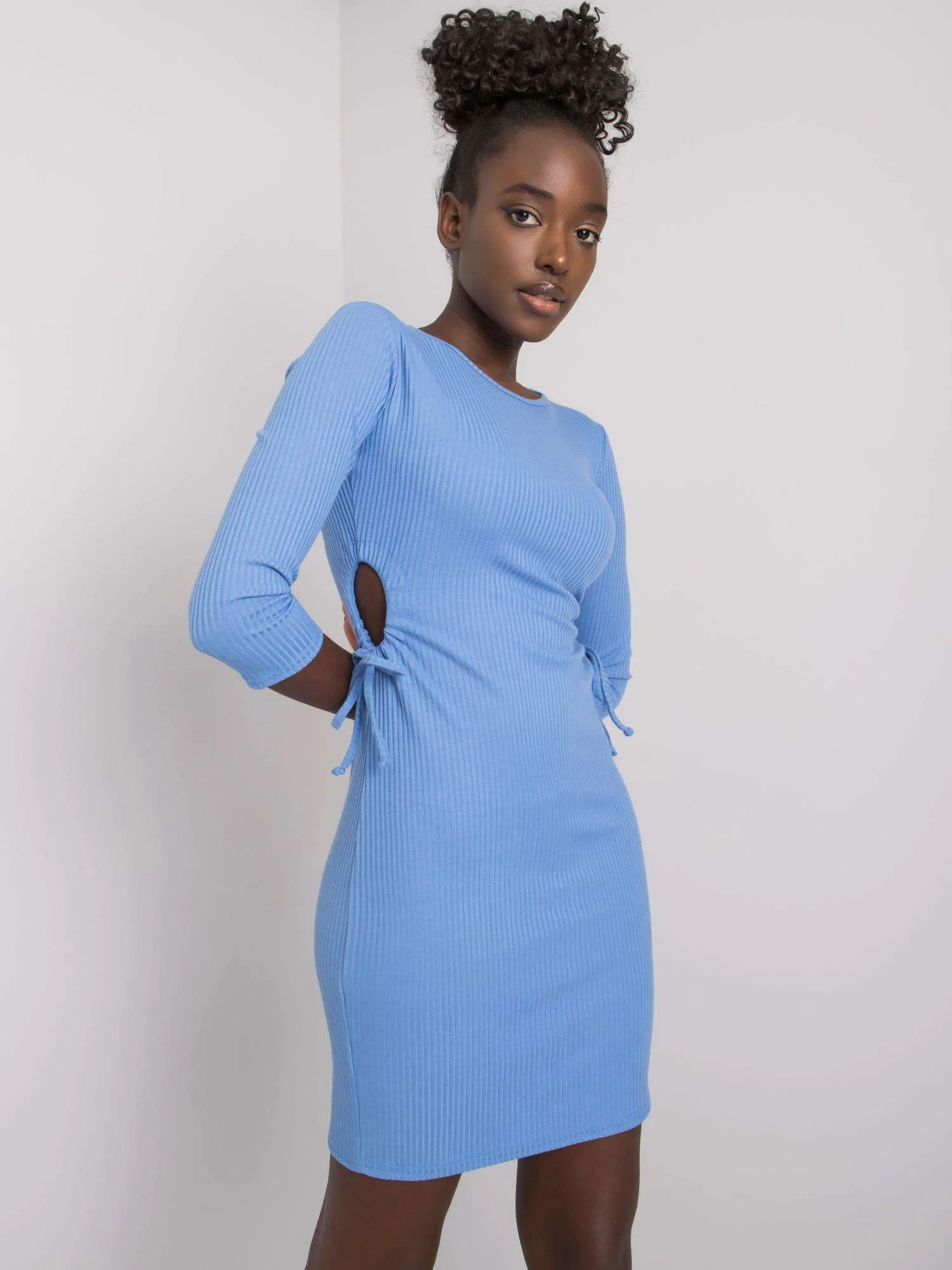 Modré žebrované mini šaty.
