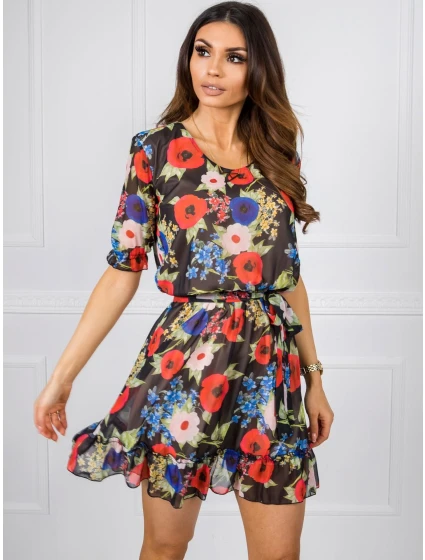 Černé šaty s květinovým vzorem.