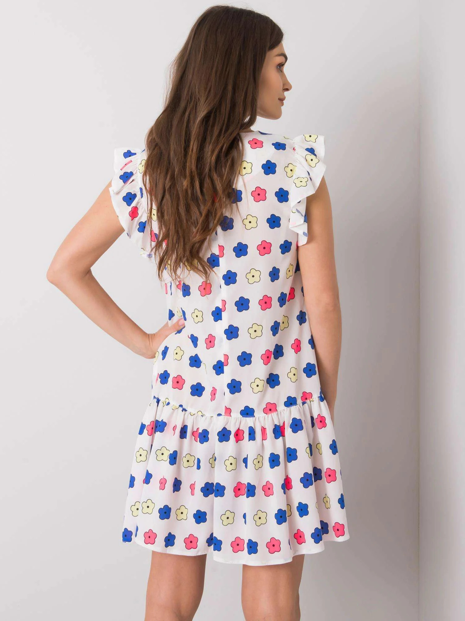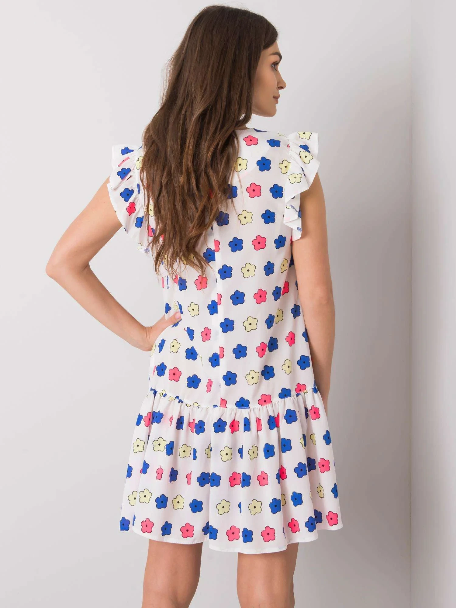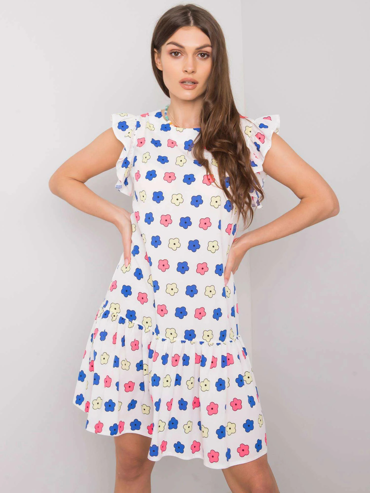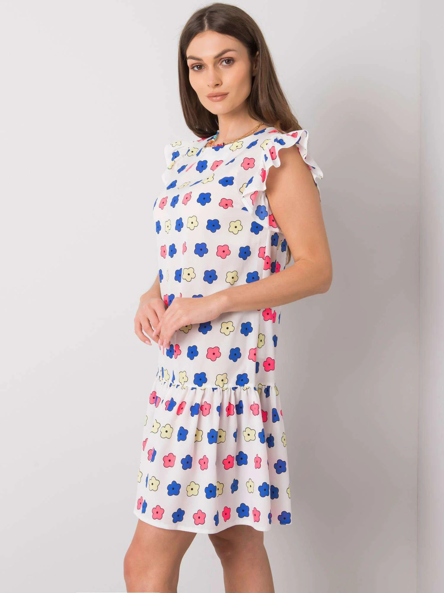 Dámské bílé květované šaty s volánem.
