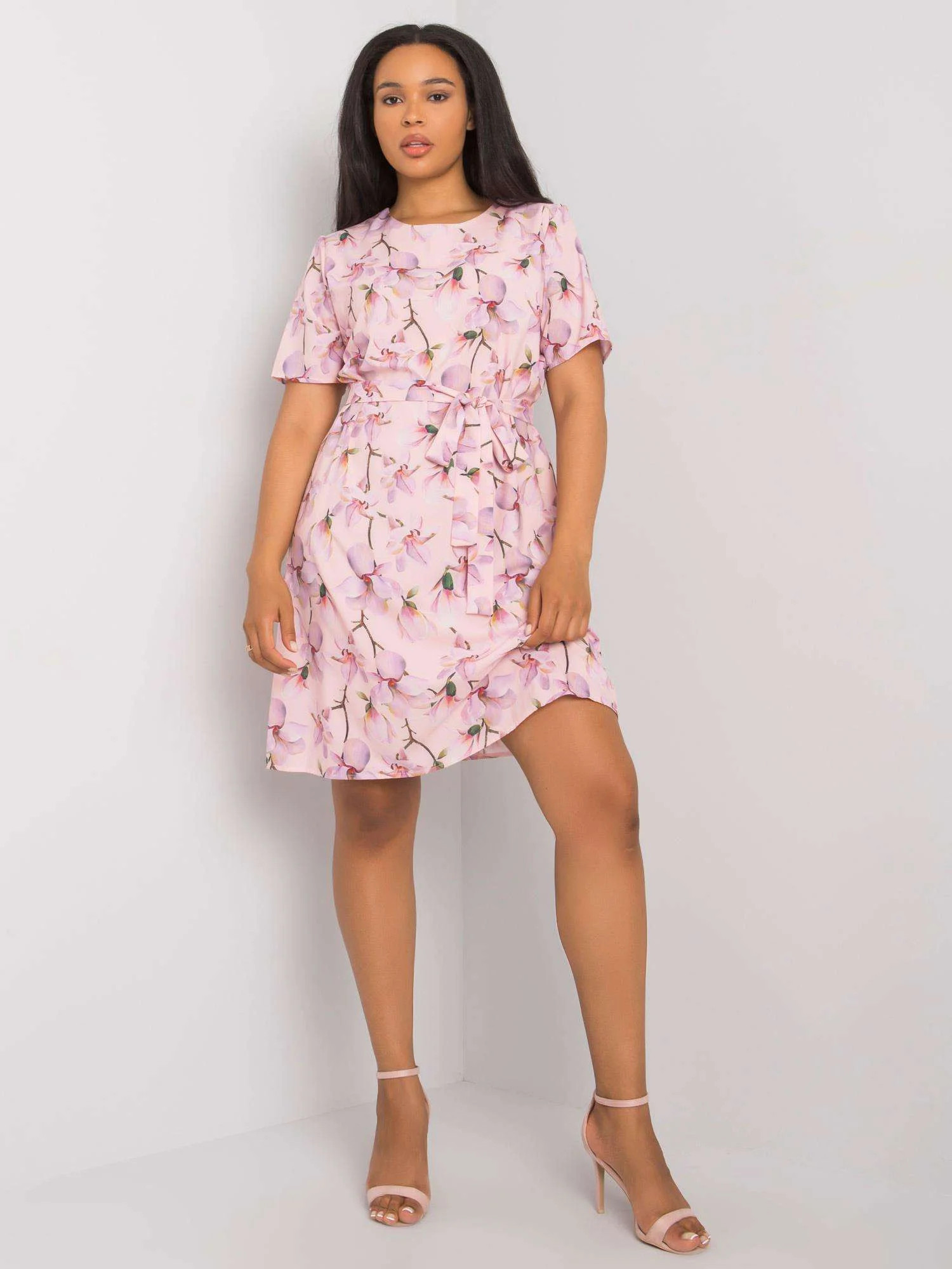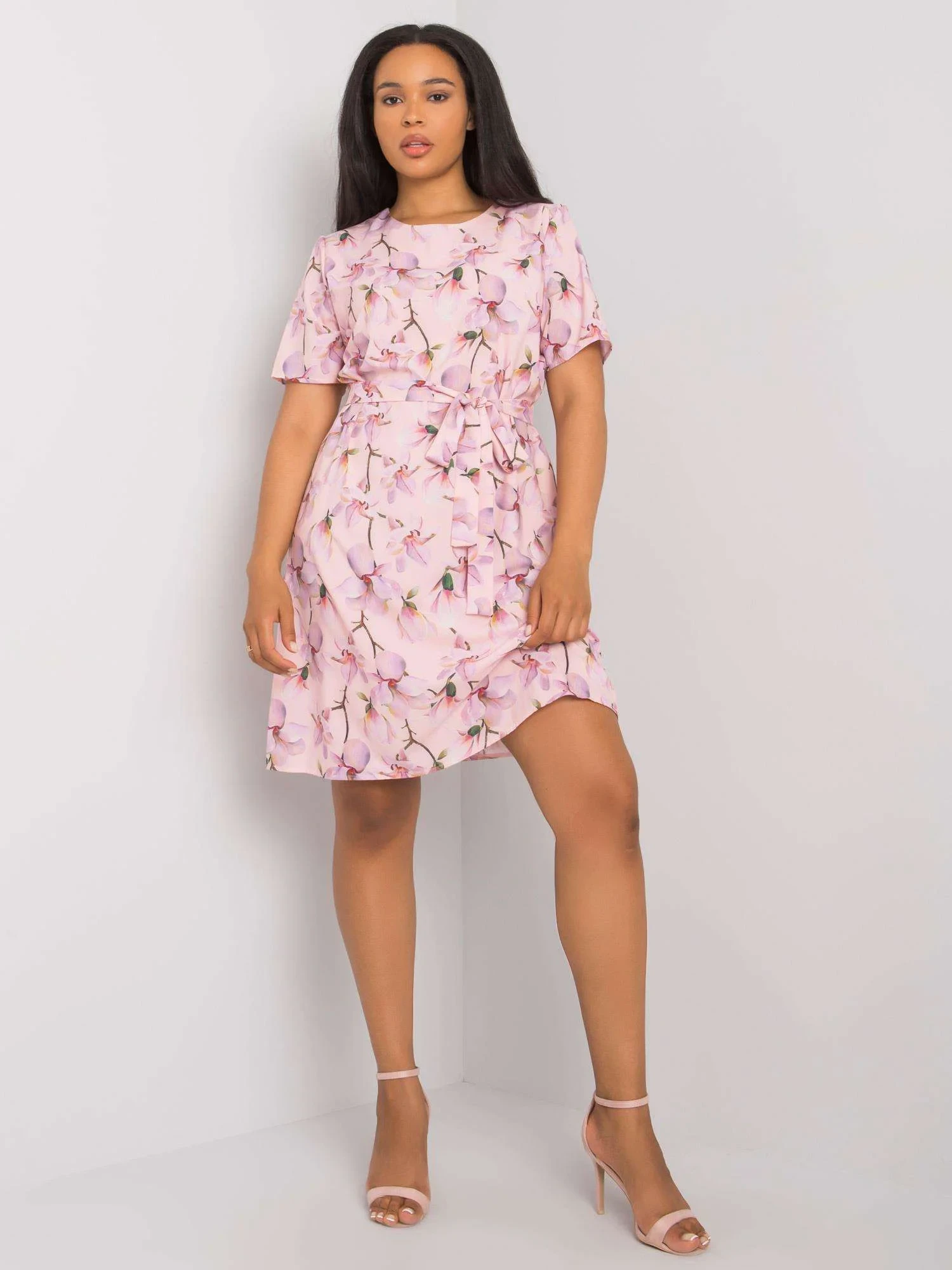Růžové plus size květinové šaty se zavazováním .
