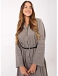 Rozměry šatů v jedné velikosti: šířka v podpaží 56 cm, šířka v pase 53 cm, délka rukávu 59 cm, šířka v pase 53 cm, šířka v bocích 71 cm, celková délka 111 cm.
