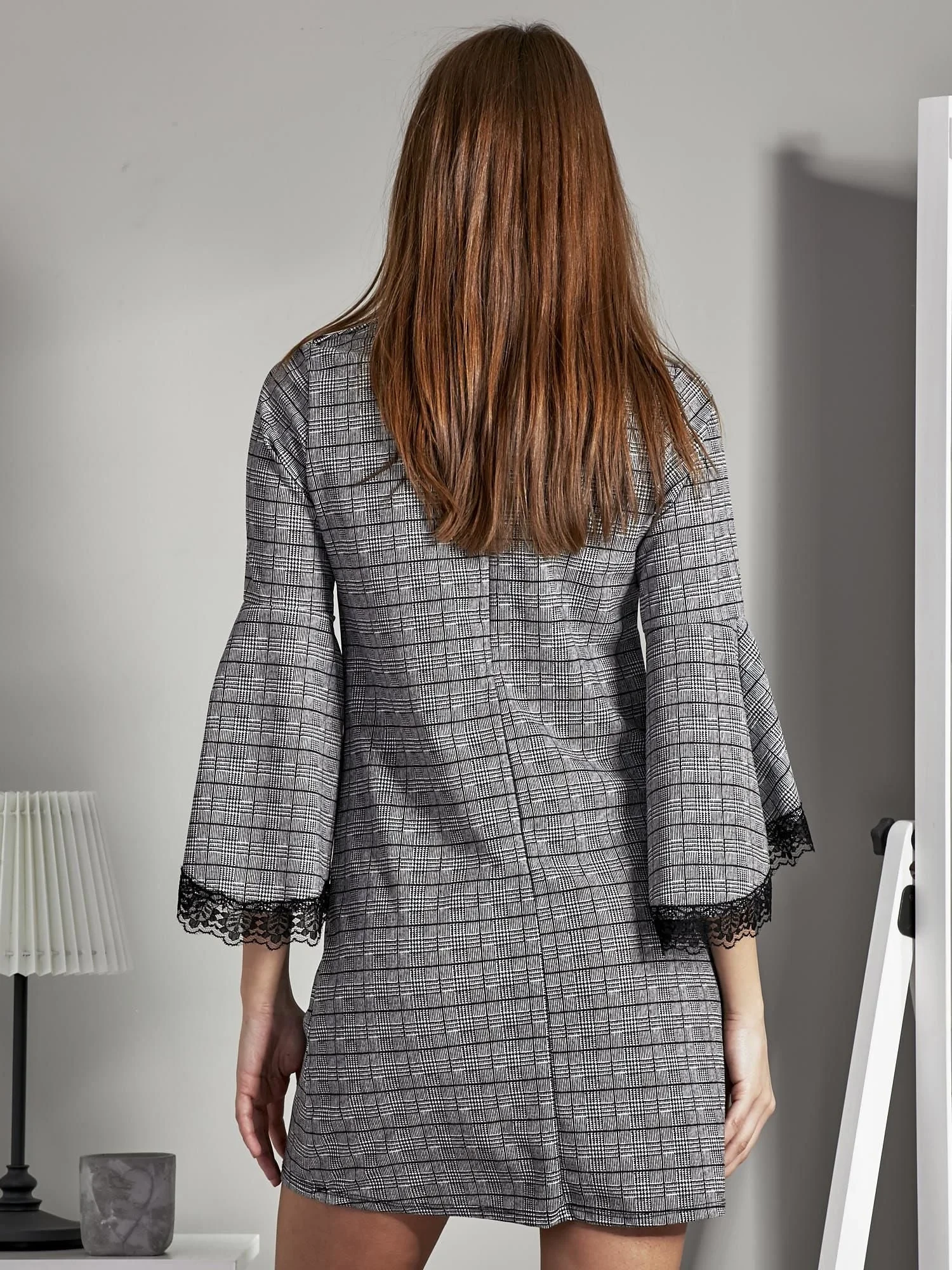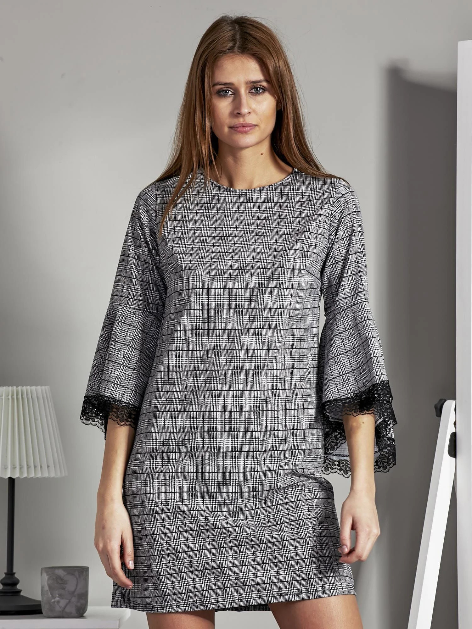 Sukienka czarno-biała ze wzorem i ozdobnymi rękawami