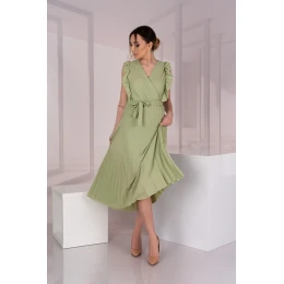 Stylové plisované šaty se v pase zavazují páskem. Díky vrstvenému výstřihu se budete cítit smyslně a krásně. Rukávy v podobě jemných volánků. Delší verze, krásně prezentovaná. Složení: 95% polyester, 5% elastan.