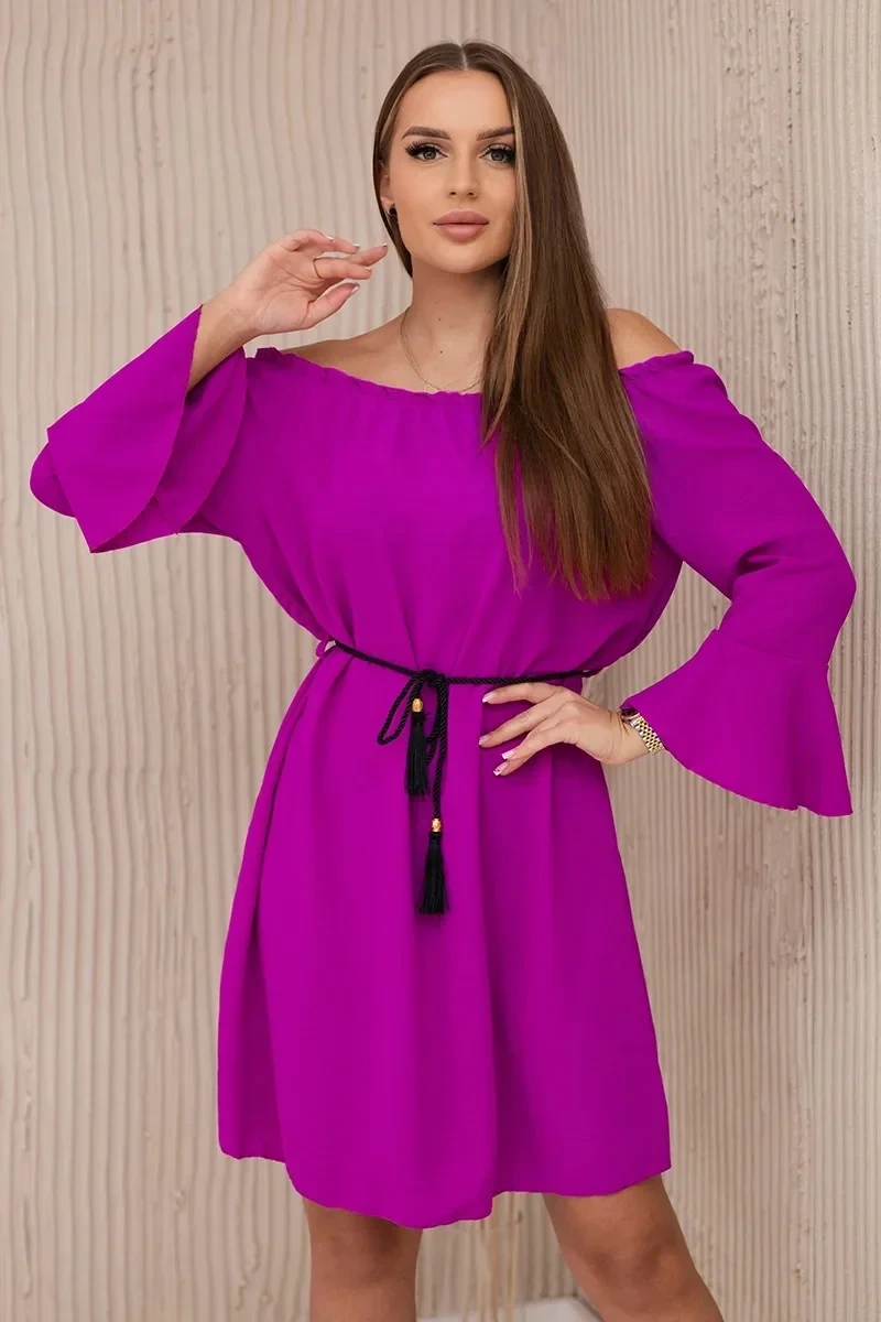 Šaty model 19639431 v pase se stahovací šňůrkou tmavě fialová - K-Fashion