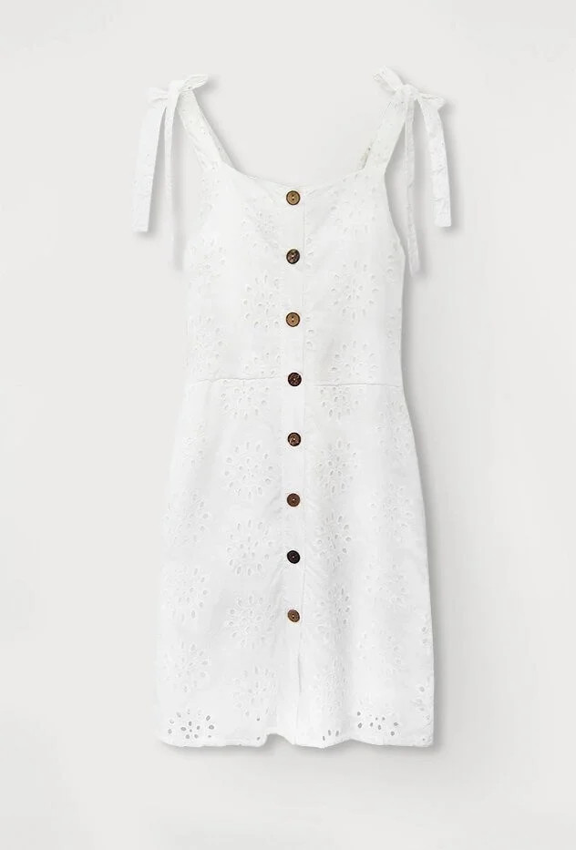 Vyšívané šaty na ramínkách s dřevěnými knoflíky