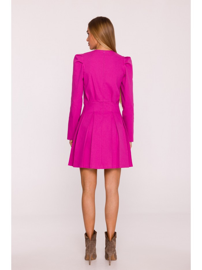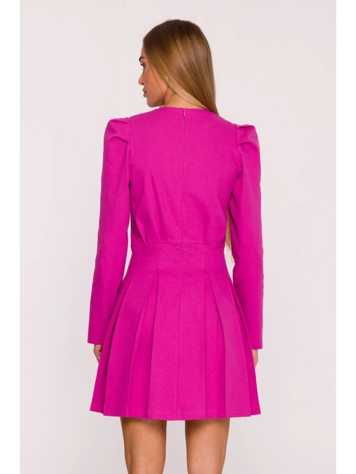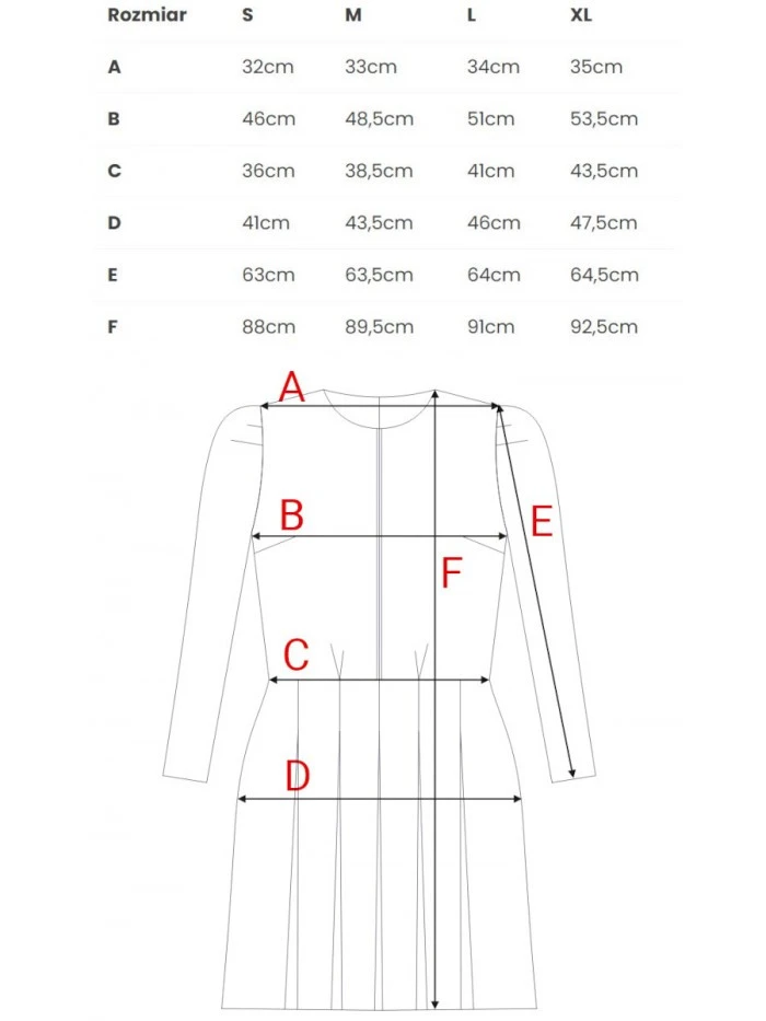 50% bavlna 47% polyester 3% elastan MATERIÁL Tkanina: látka džínového vzhledu - mírně tuhá, matná a jemně pružná. PODROBNOSTI O PRODUKTU Výstřih: kulatý, klasický Rukávy: dlouhé se záhyby na ramenou Zapínání: skrytý zip na zádech Kapsy: žádné Podšívka: žádná Model: M884 Navrženo a vyrobeno v Polsku Modelka na fotografii měří 171 cm a má na sobě velikost S STŘIH A VÝSTŘIH Střih: vypasovaný horní díl, rozšířený spodní díl se záhyby Tvar: vymezený pas, zvýrazněná ramena Délka: mini