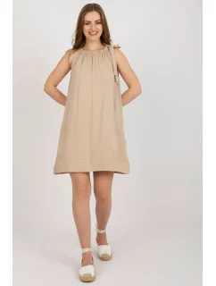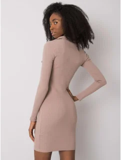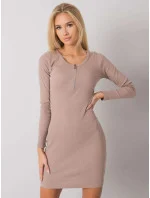 RUE PARIS Tmavě béžové žebrované tužkové šaty.