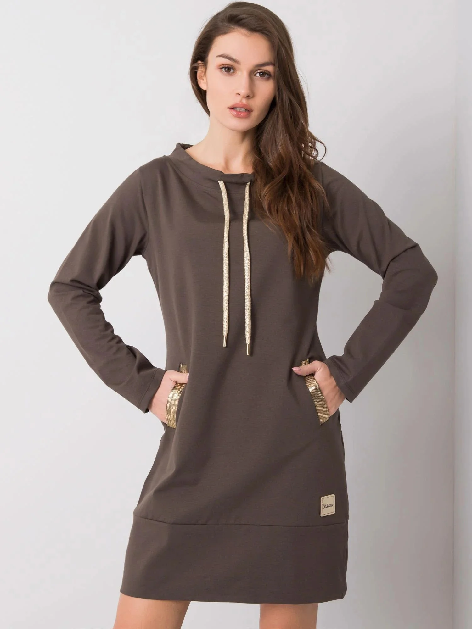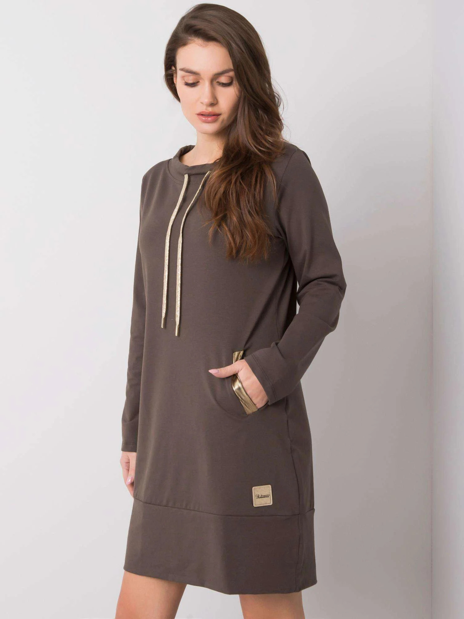 Bavlněné šaty v tmavě khaki barvě.
