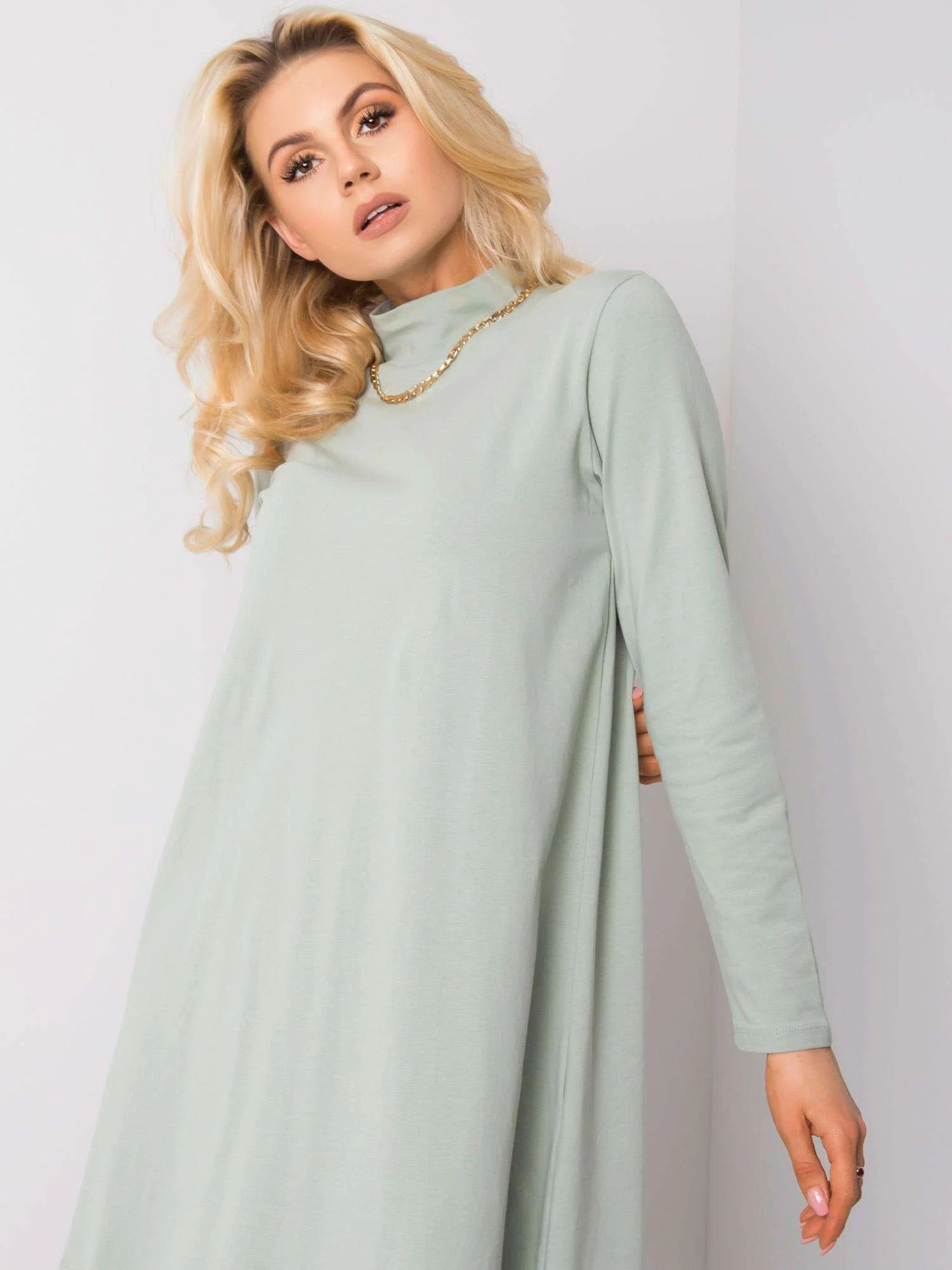 RUE PARIS Pistáciové šaty s rolákem.