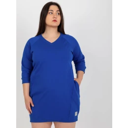 Kobaltové mini plus size šaty s 3/4 rukávy .