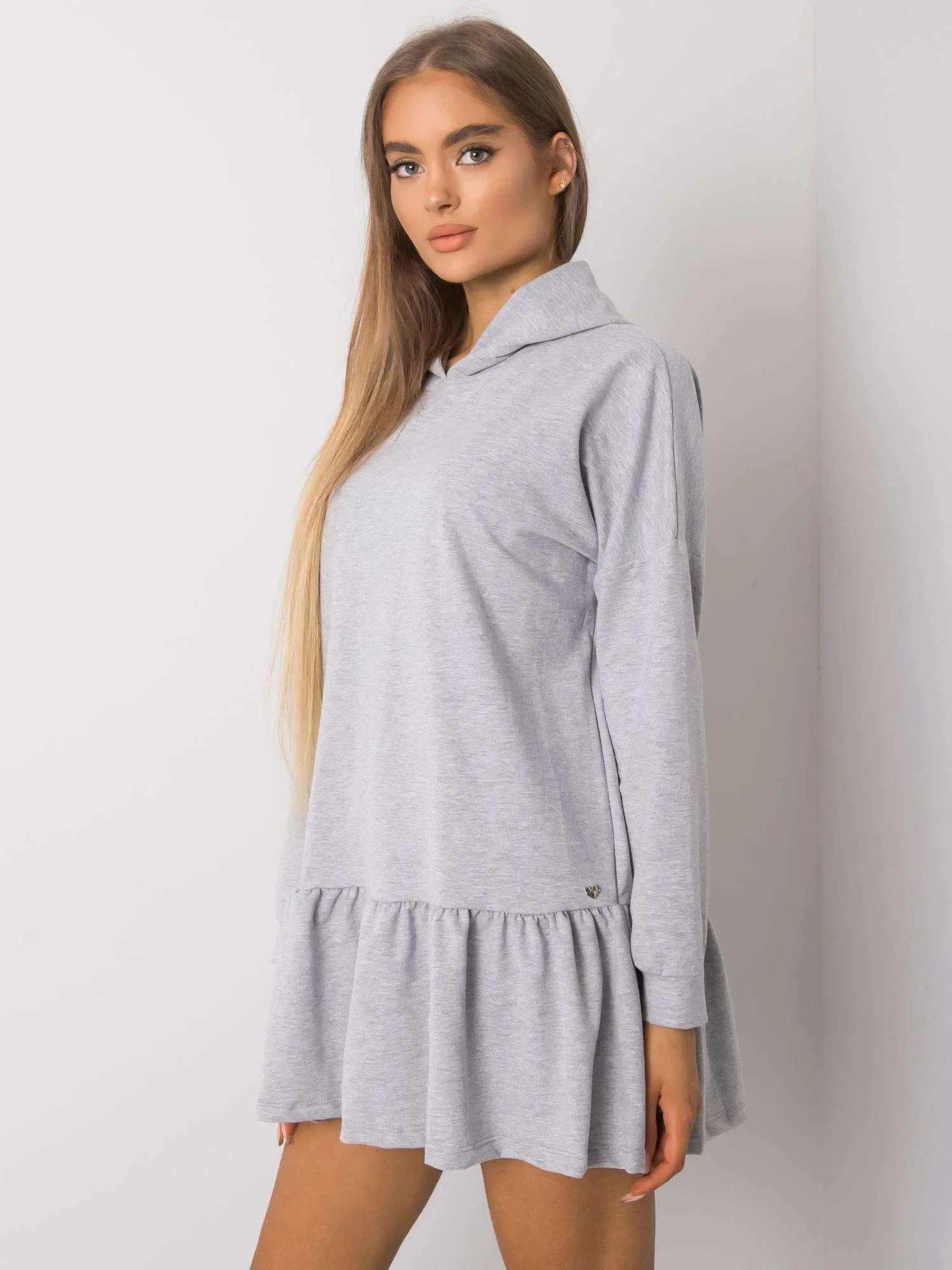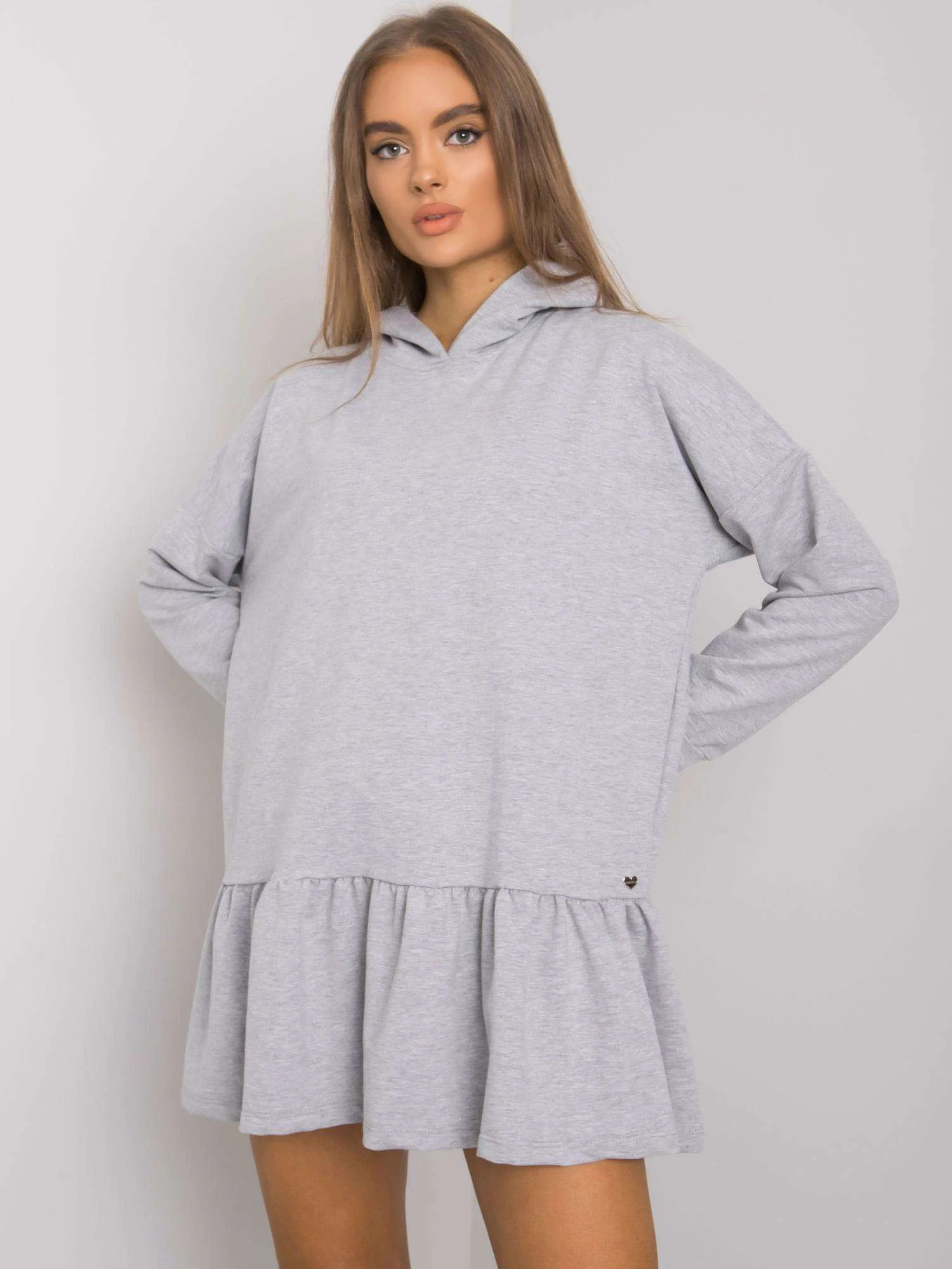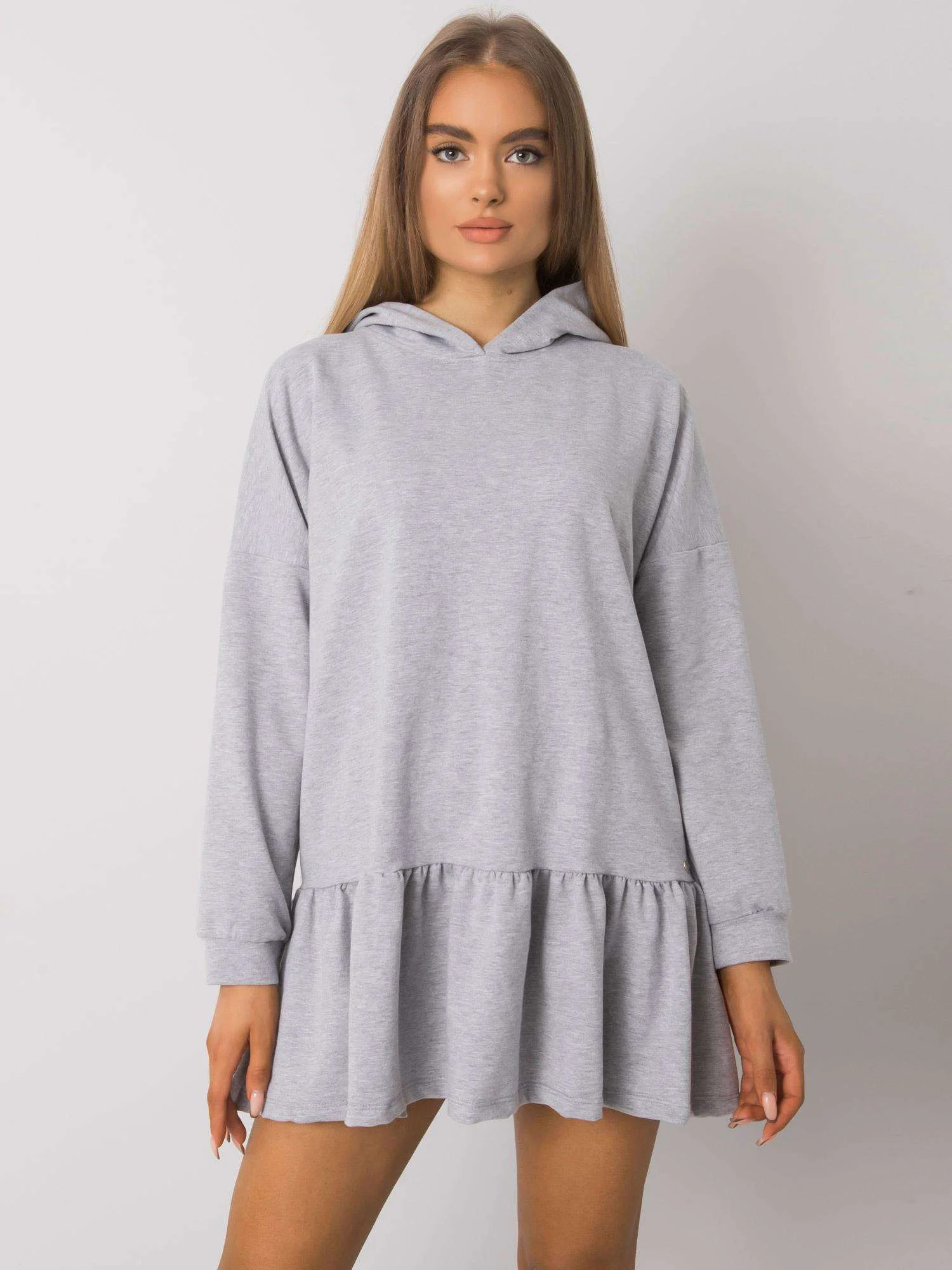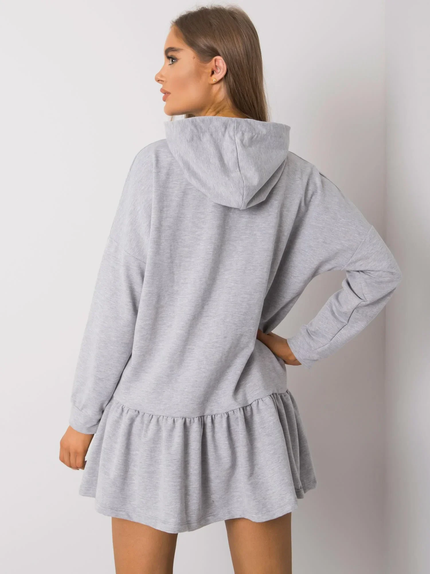 Šedé melanžové bavlněné šaty s kapucí.