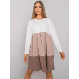 RUE PARIS Ecru-tmavě béžové bavlněné šaty.