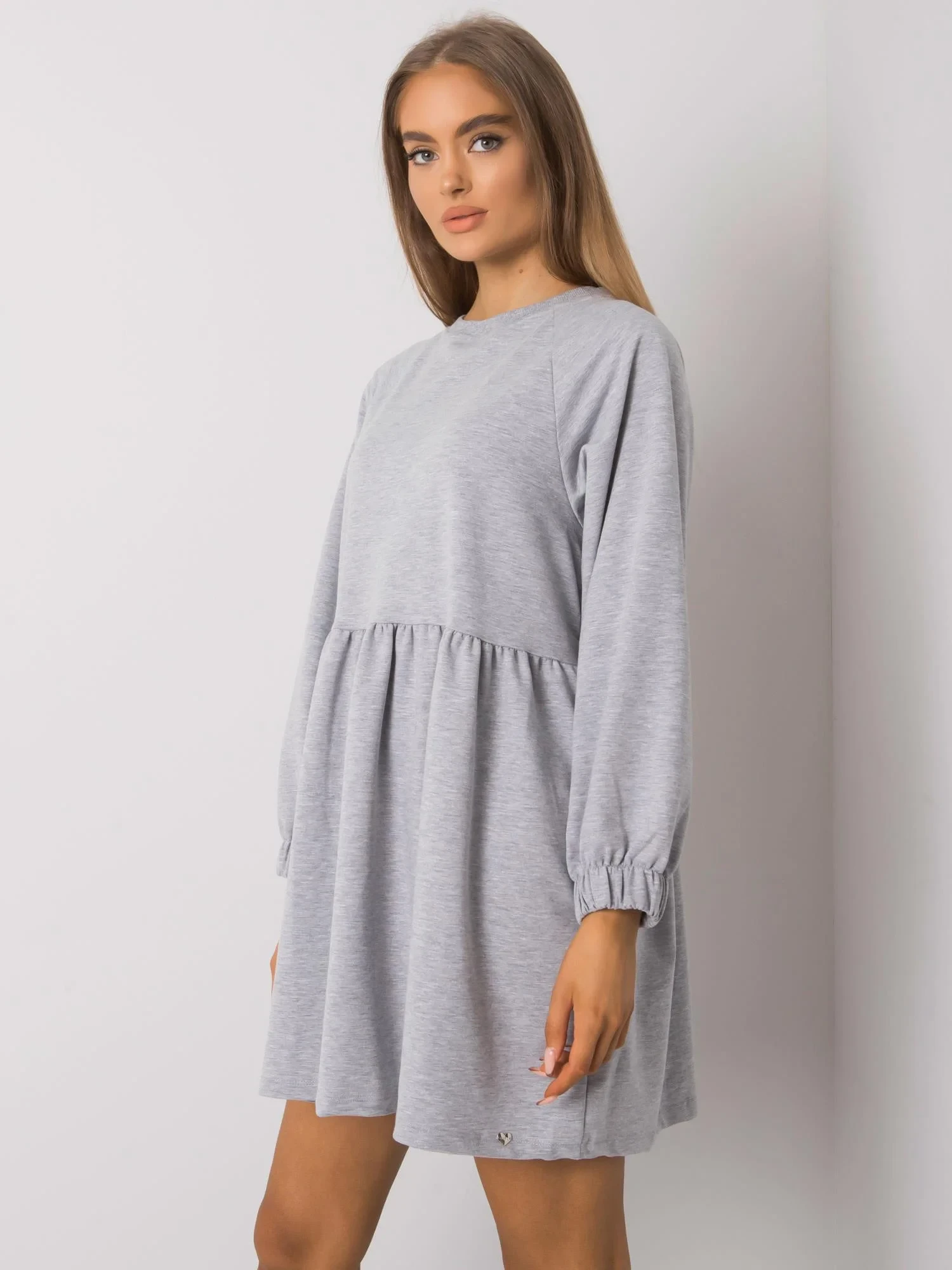 Šedé melanžové základní šaty s dlouhými rukávy .