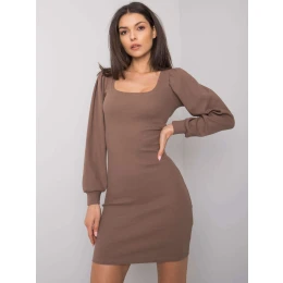RUE PARIS Hnědé šaty s dlouhými rukávy.