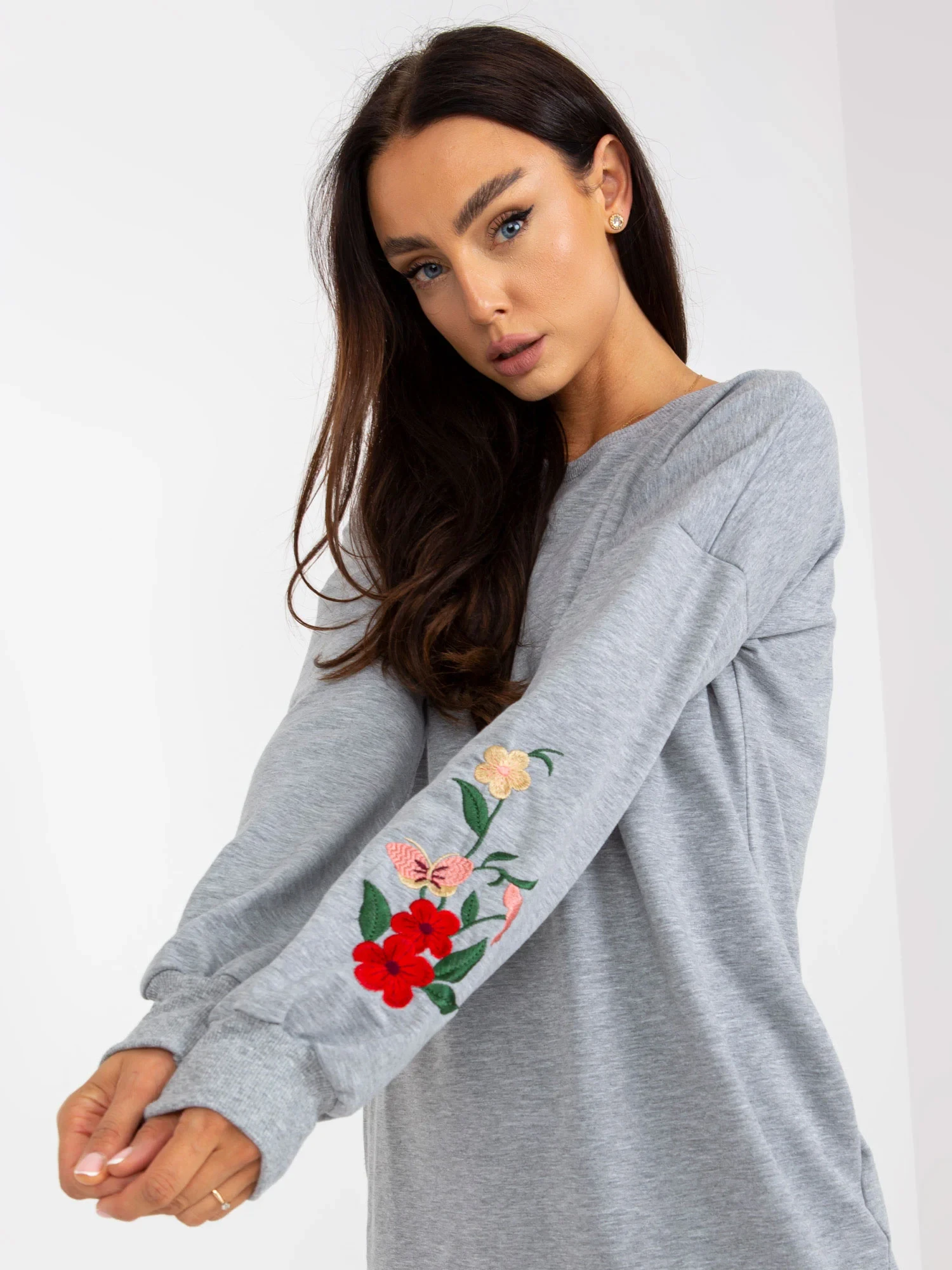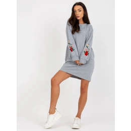 Šedé teplákové šaty s výšivkou a kapsami od RUE PARIS .