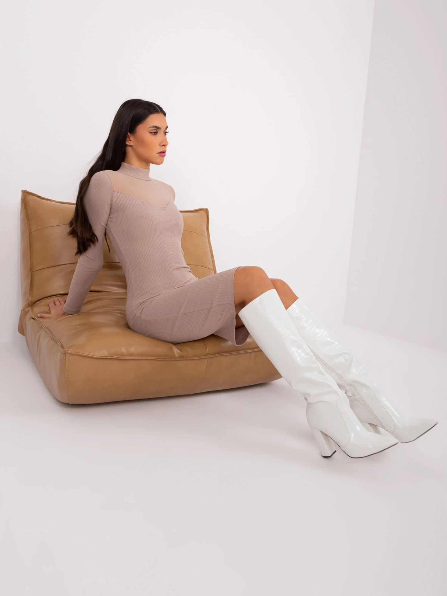 Tmavě béžové vypasované žebrované šaty BASIC FEEL GOOD .