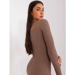 BASIC FEEL GOOD Hnědé šaty s dlouhým rukávem .