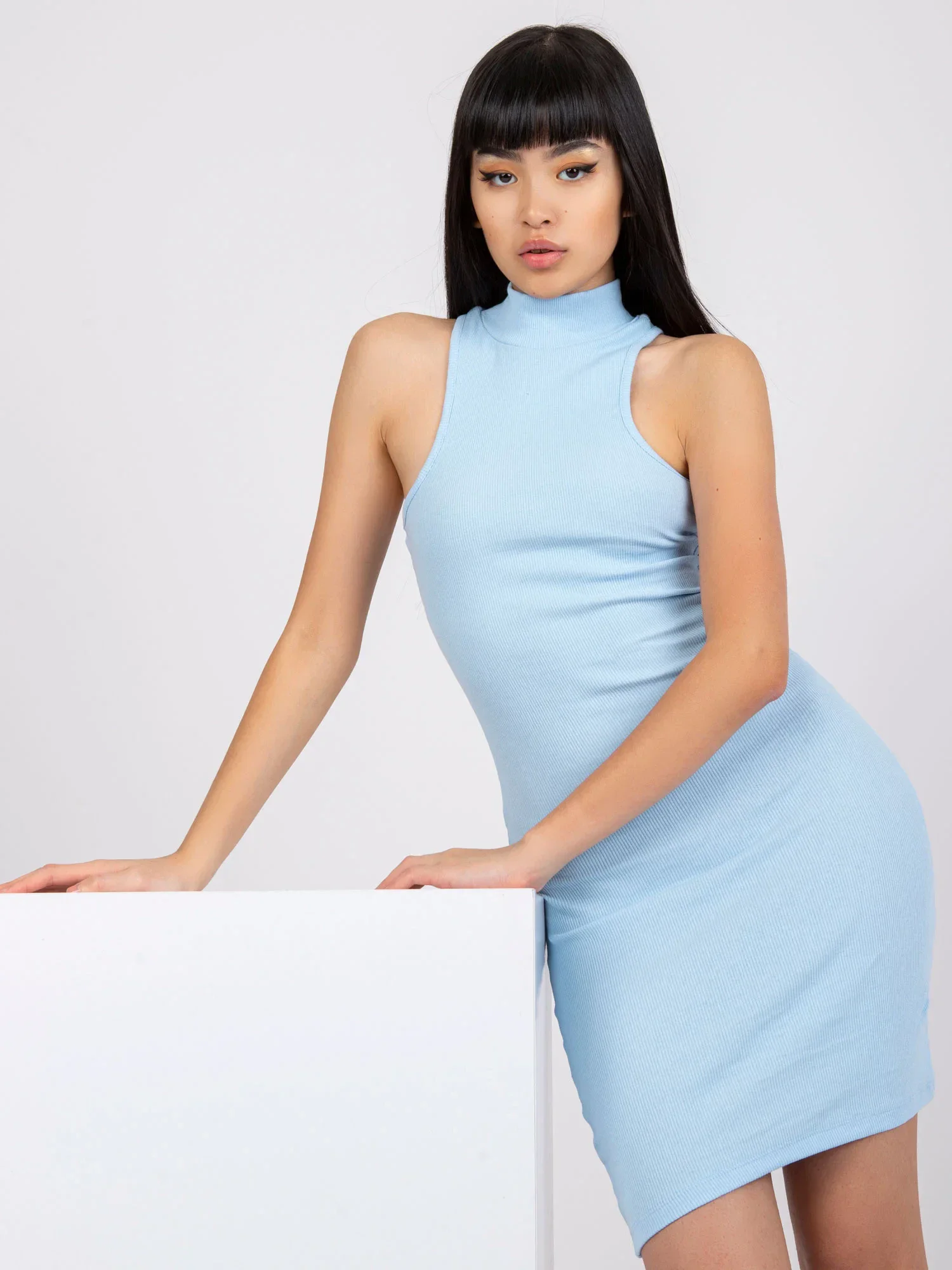 RUE PARIS Světle modré šaty s rolákem.