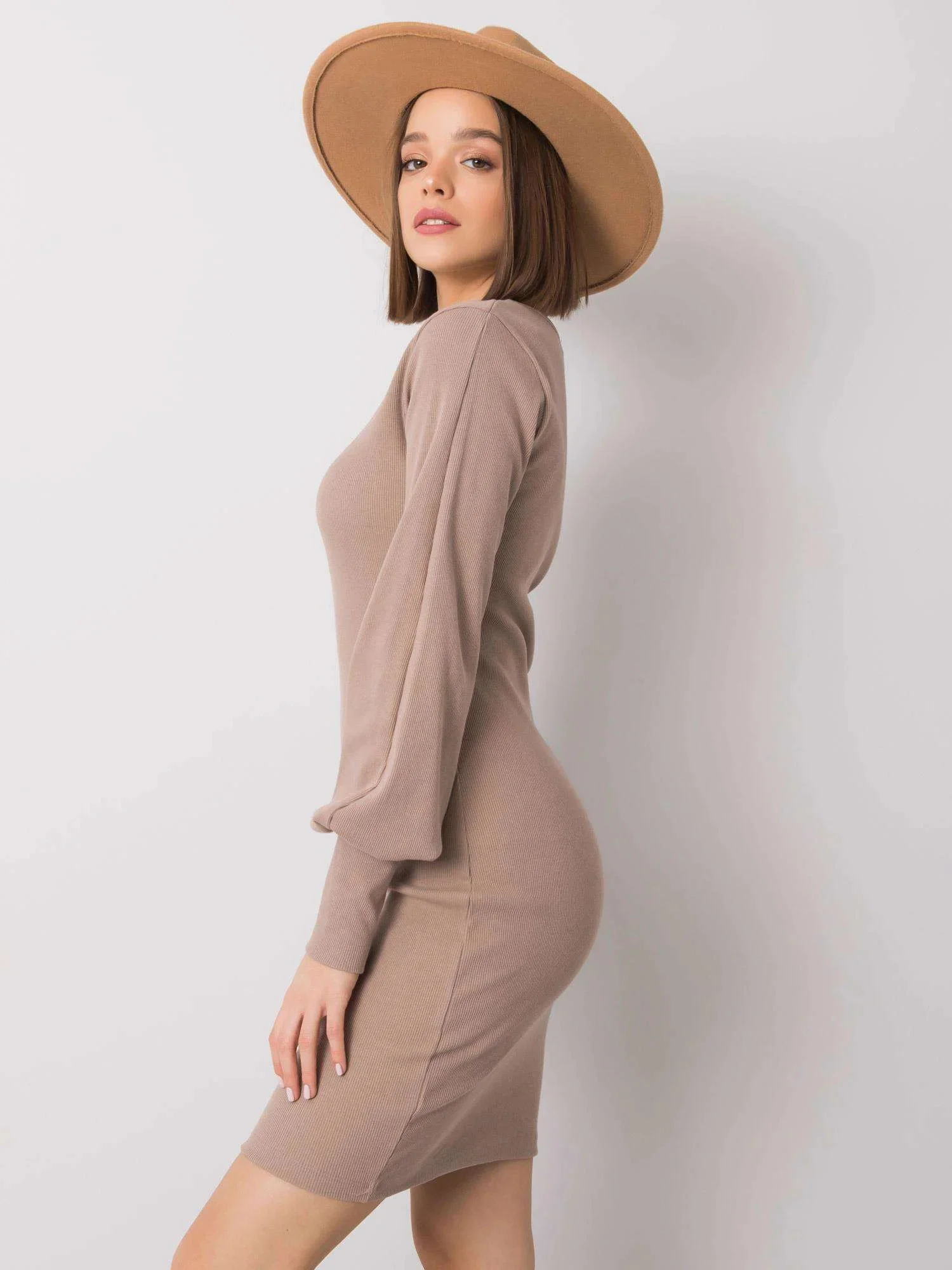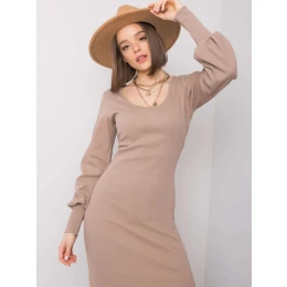 RUE PARIS Tmavě béžové vypasované šaty.