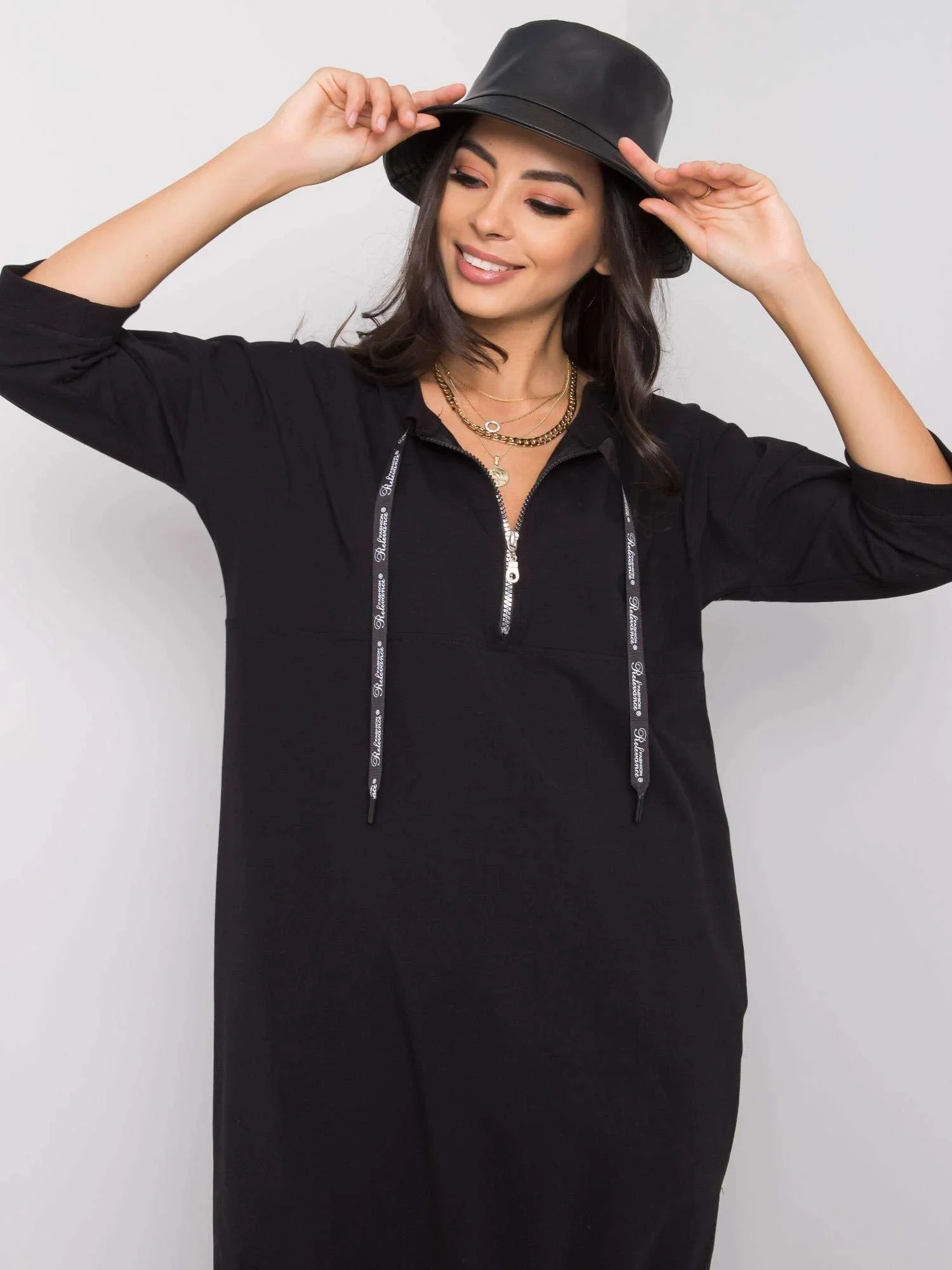 Černé bavlněné šaty na zip.