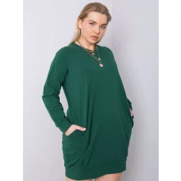 Tmavě zelené plus size šaty s dlouhým rukávem.