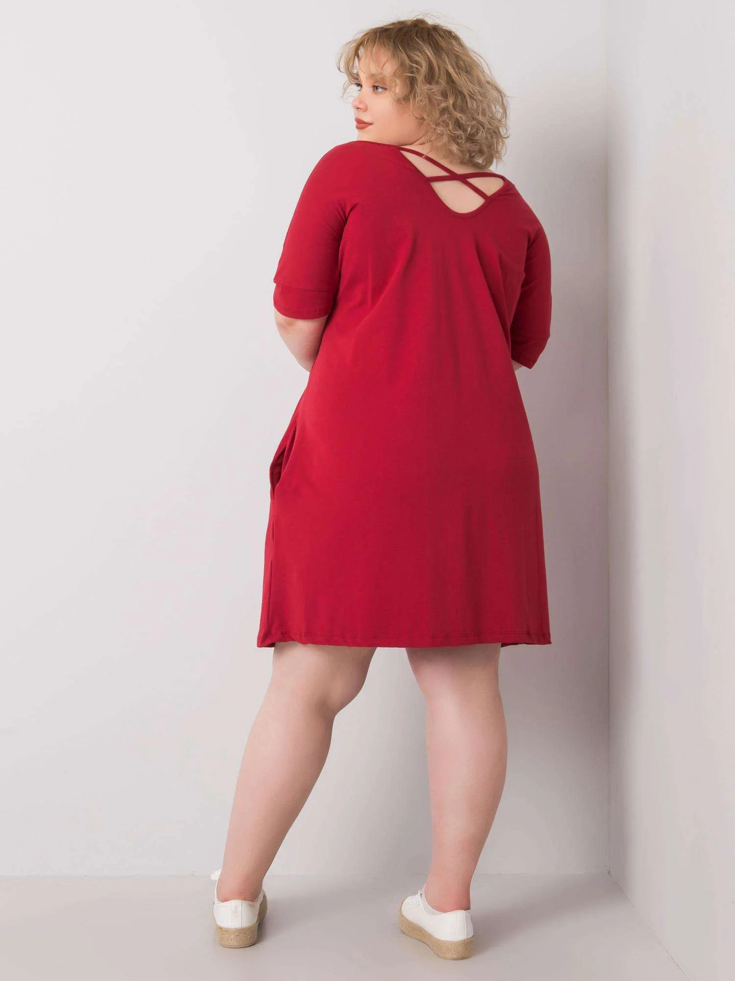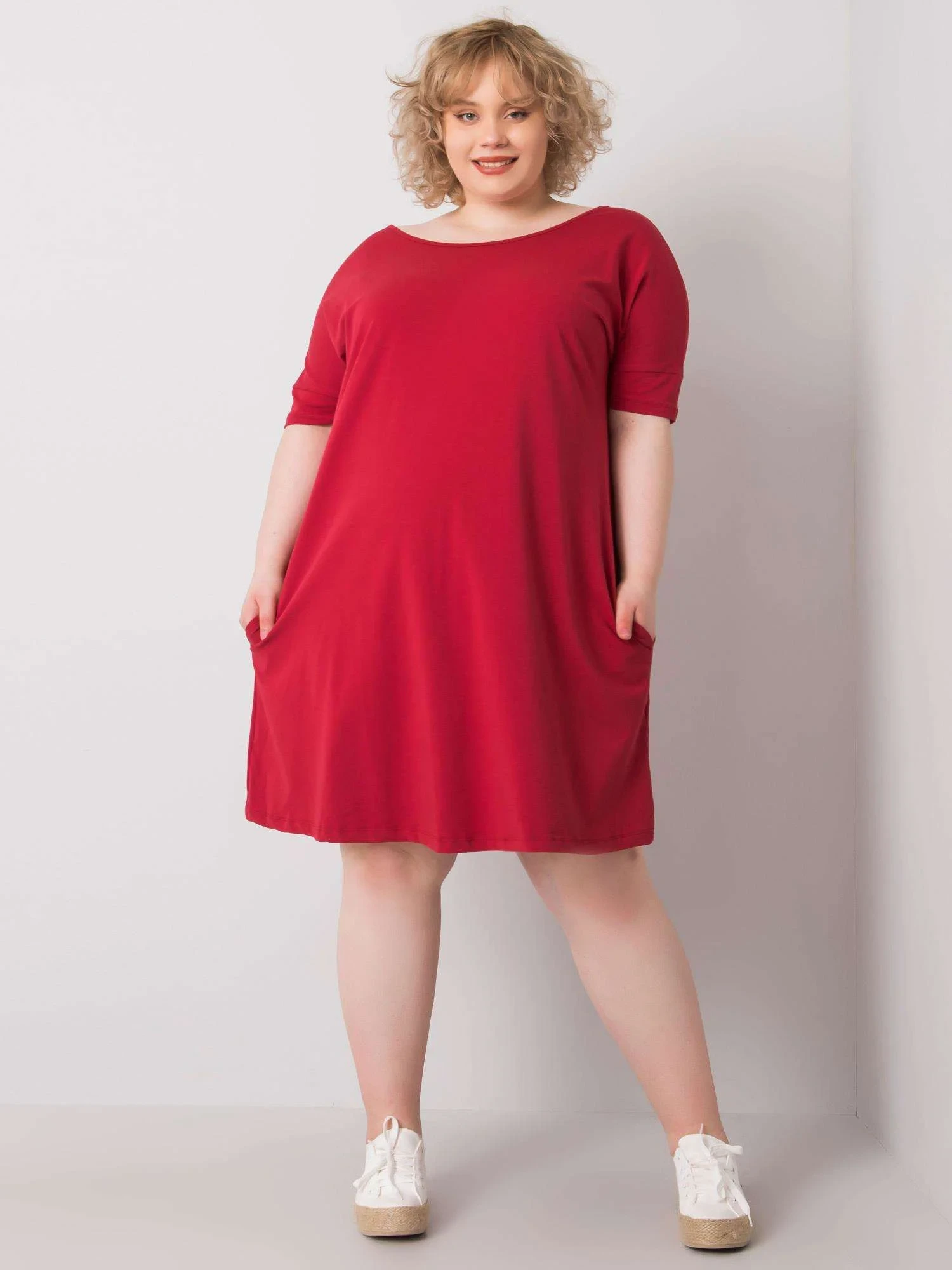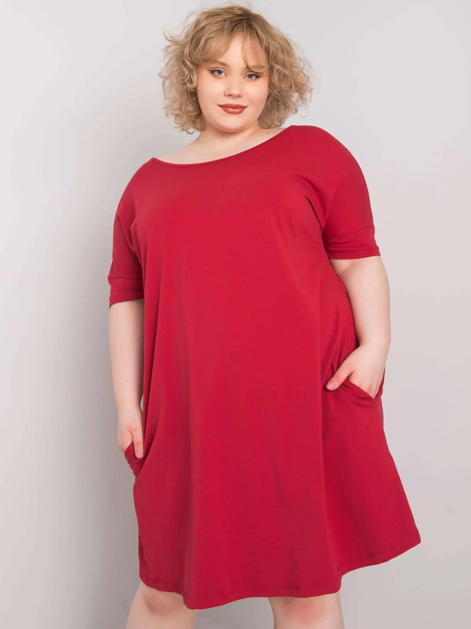 Bordó volné plus size šaty.