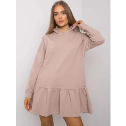 Tmavě béžové bavlněné šaty s kapucí.