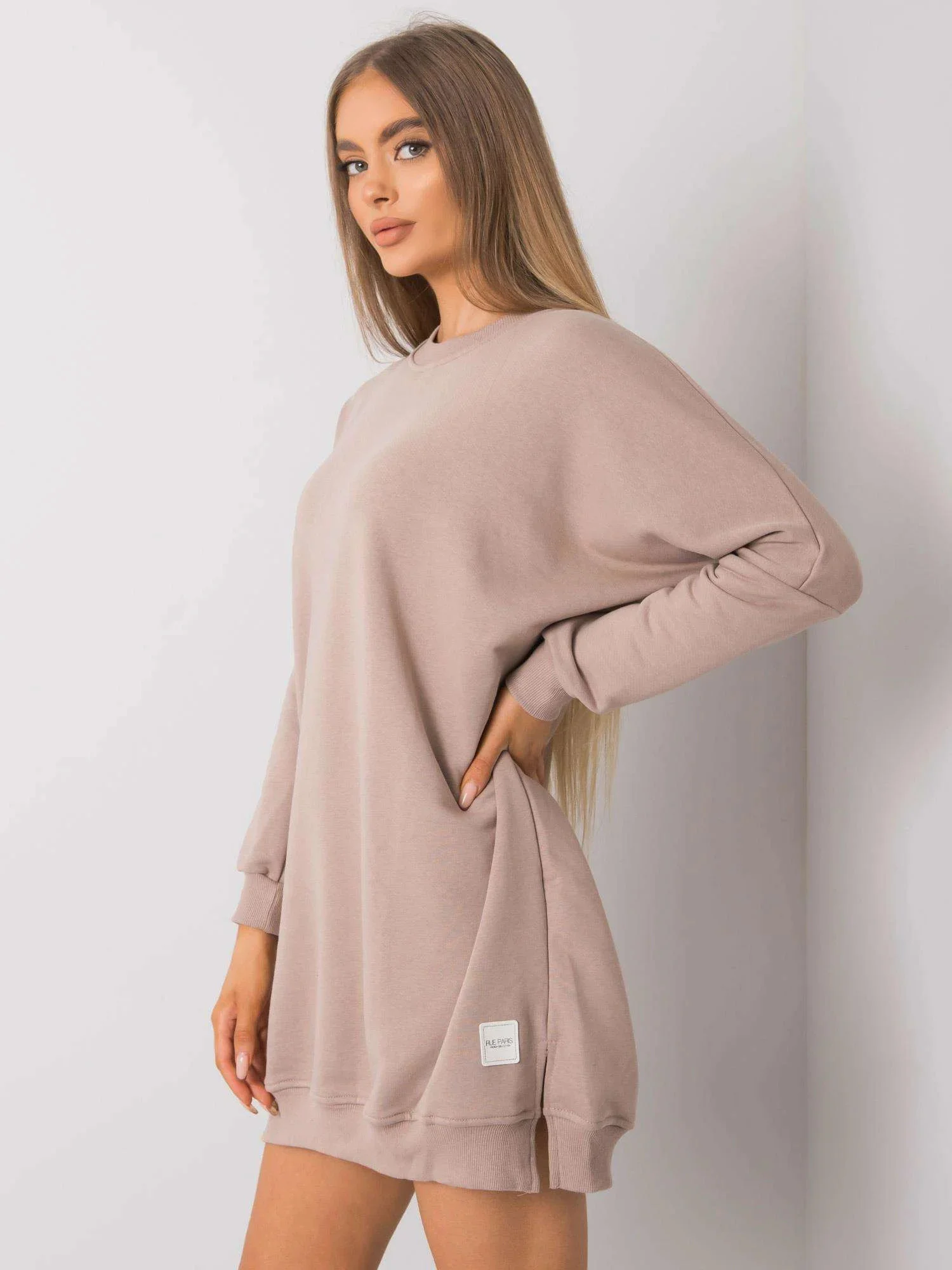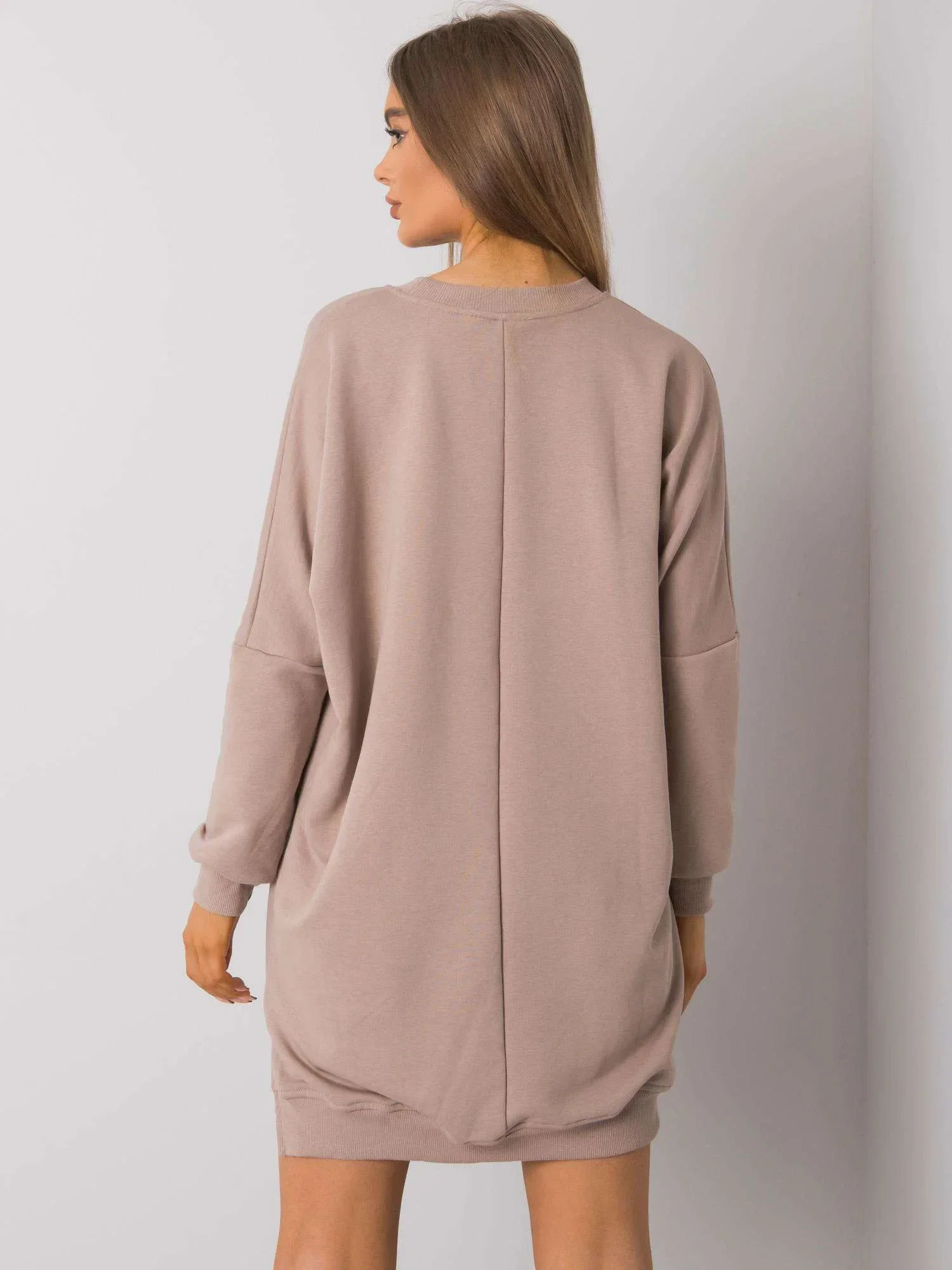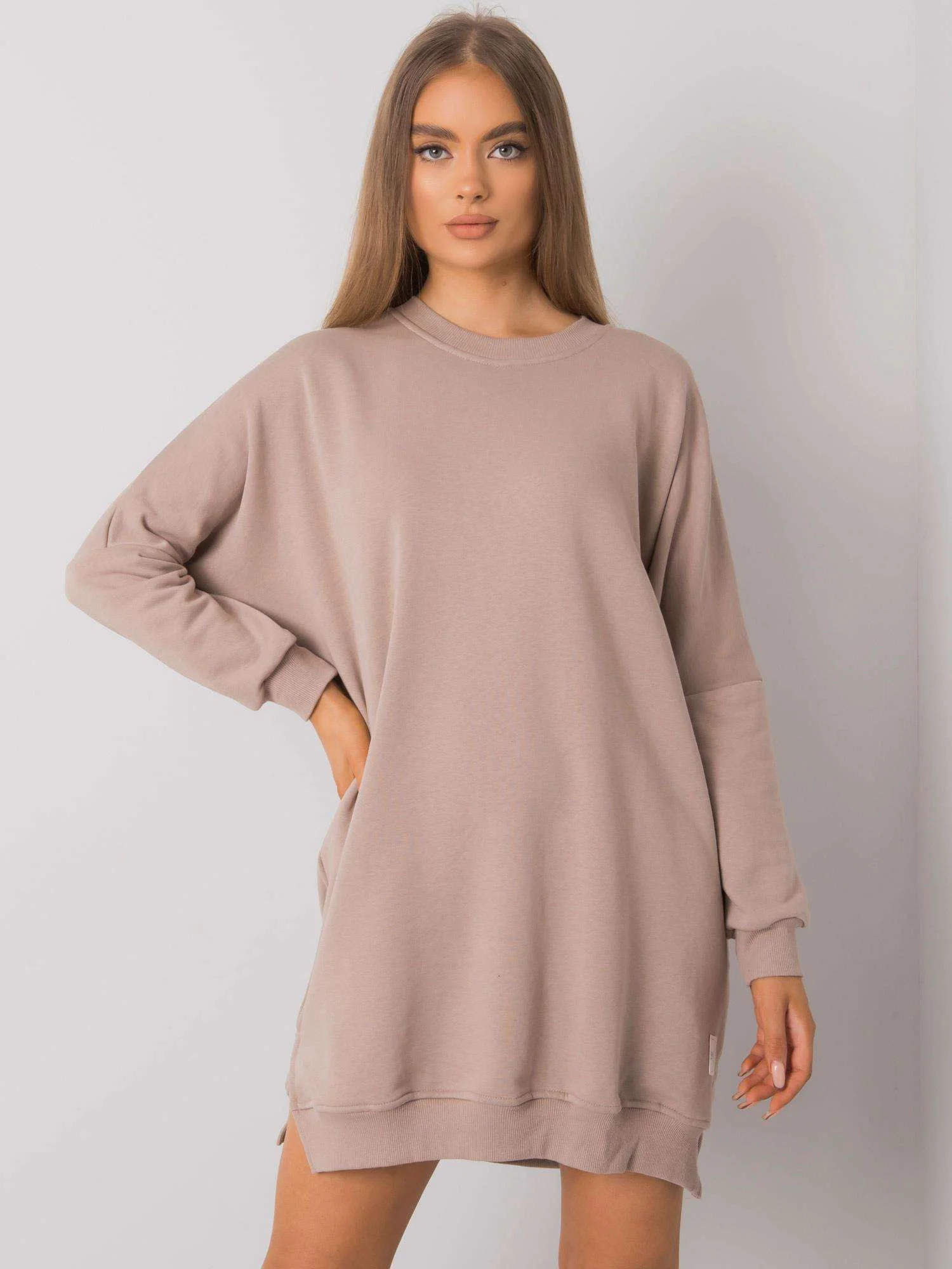 RUE PARIS Tmavě béžové bavlněné dámské šaty.