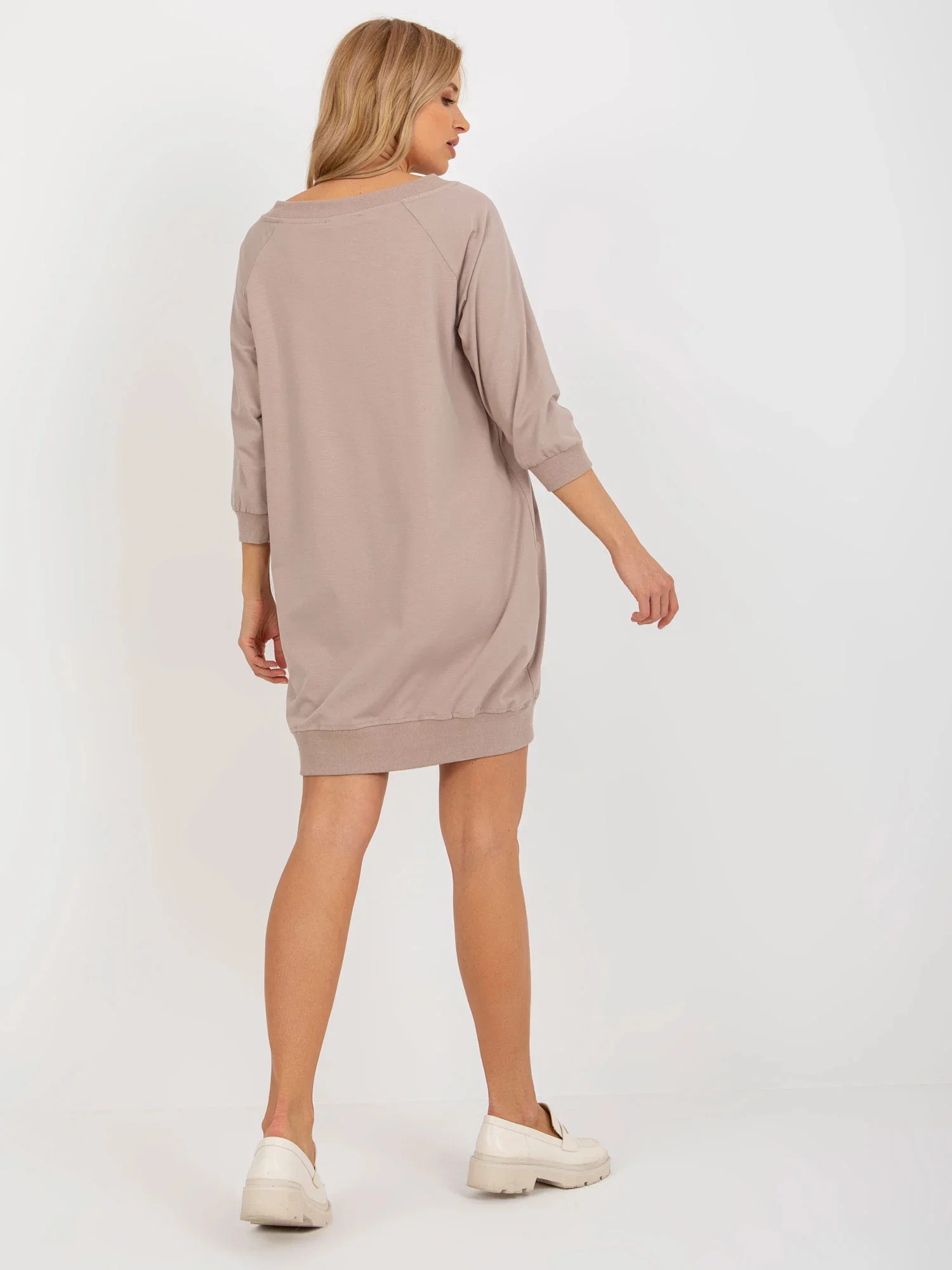 Rozměry šatů ve velikosti S/M měřené na plocho: šířka v podpaží - 56 cm, celková délka - 89 cm, délka rukávu - 47 cm