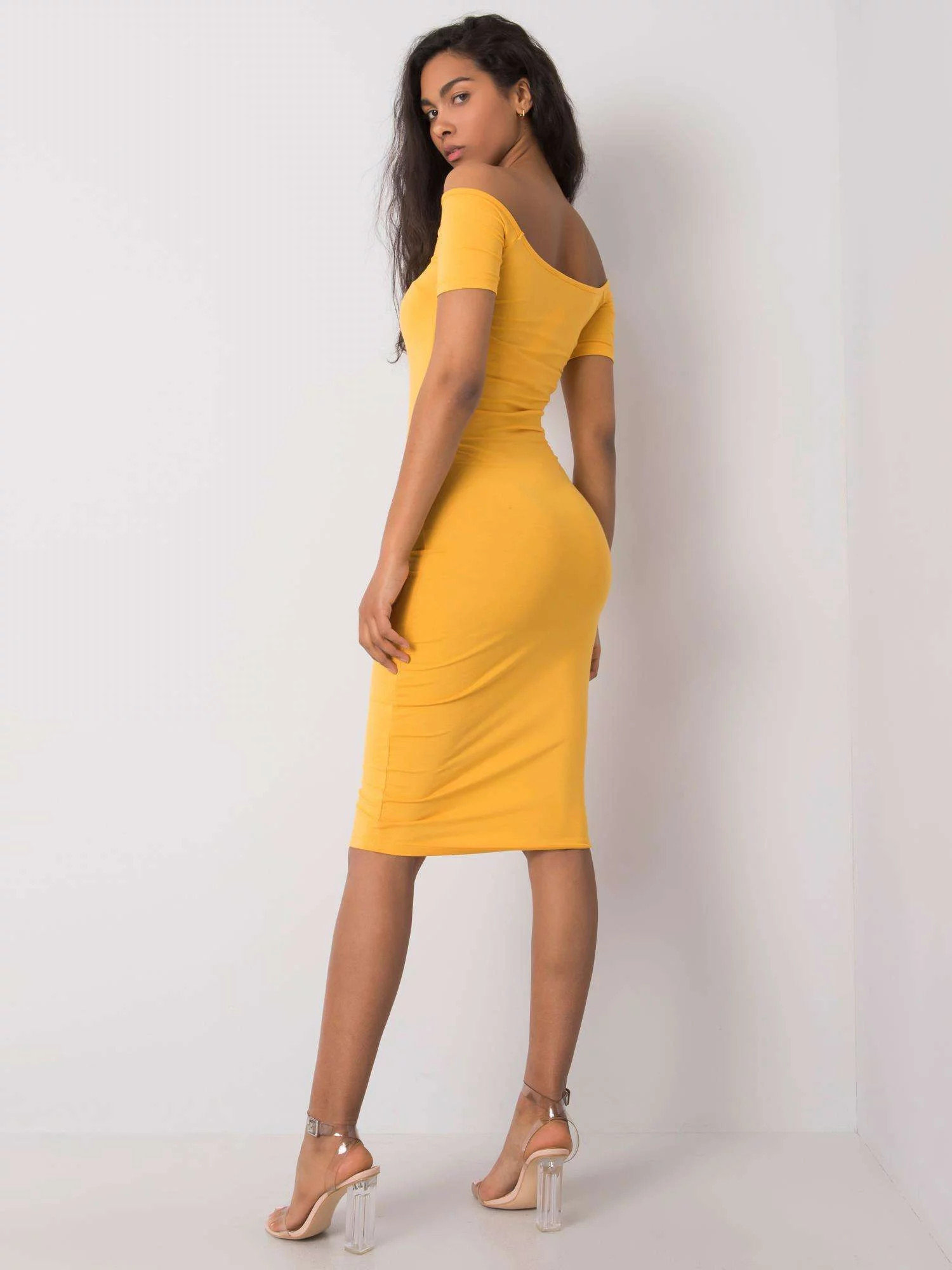 RUE PARIS Tmavě žluté dámské šaty.