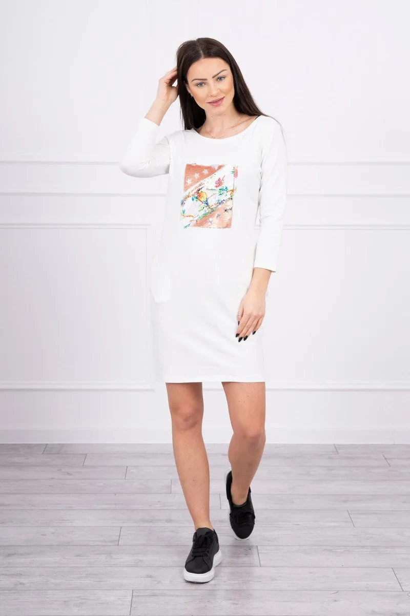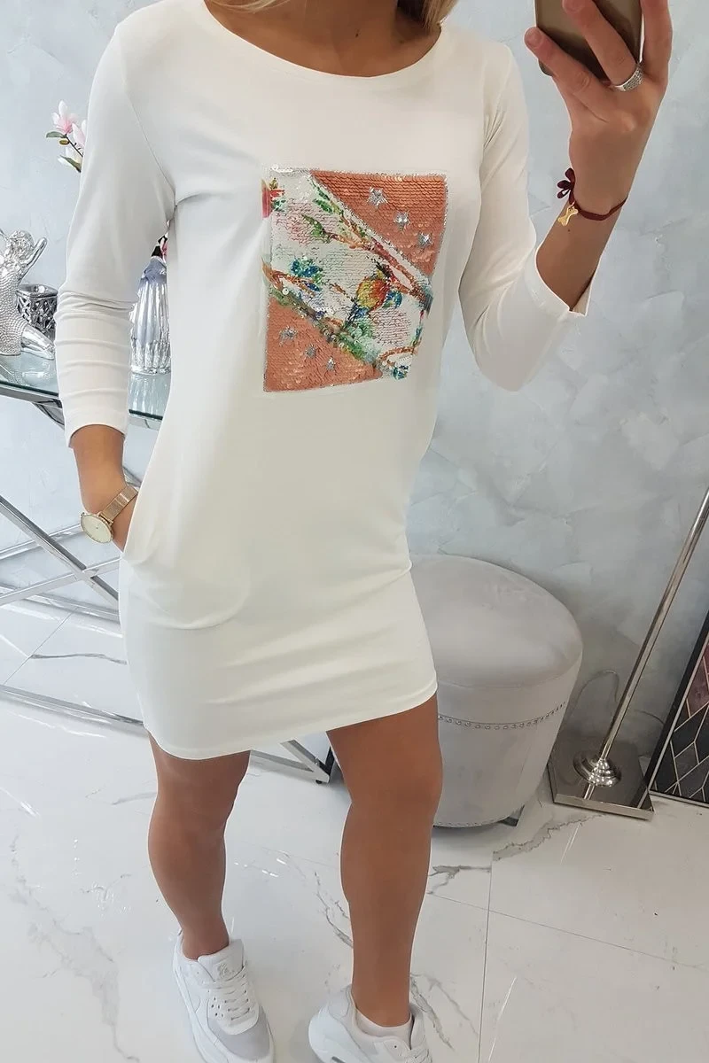 Šaty s 3D grafikou Bird ecru