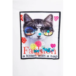 Šaty s 3D grafikou kočky ecru